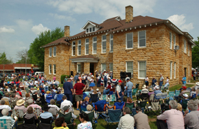 During the last weekend of October, thousands attend the Arkansas Bean Fest and Great Championship Outhouse Races. Early Saturday morning, nearly one ton of pinto beans are cooked in large, antique iron kettles that are set up along the west side of the courthouse square. Promptly at noon, a nearly endless amount of free beans and cornbread are served to the gathered crowd. The festival continues with the famous Outhouse Race. Teams from Arkansas and surrounding states push outhouses built on wheels (similar to a go-kart) in a series of races. The overall champion receives the coveted Golden Toilet Seat Trophy. Handmade crafts and folk music play an integral part in this festival as well.