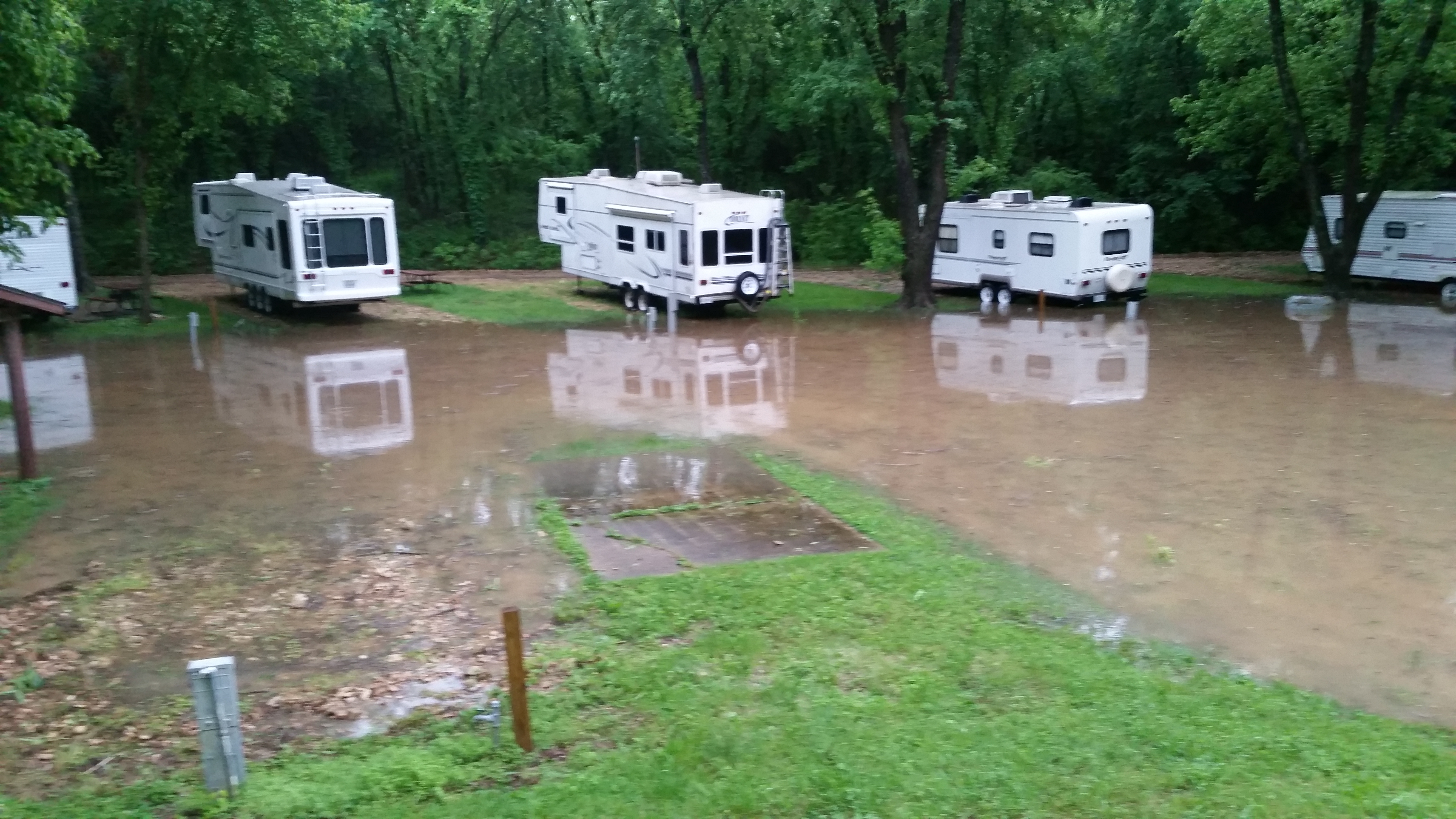There were about a dozen fifth wheels parked here for storage. People were moving them to higher ground since that area was slowly filling with water.
