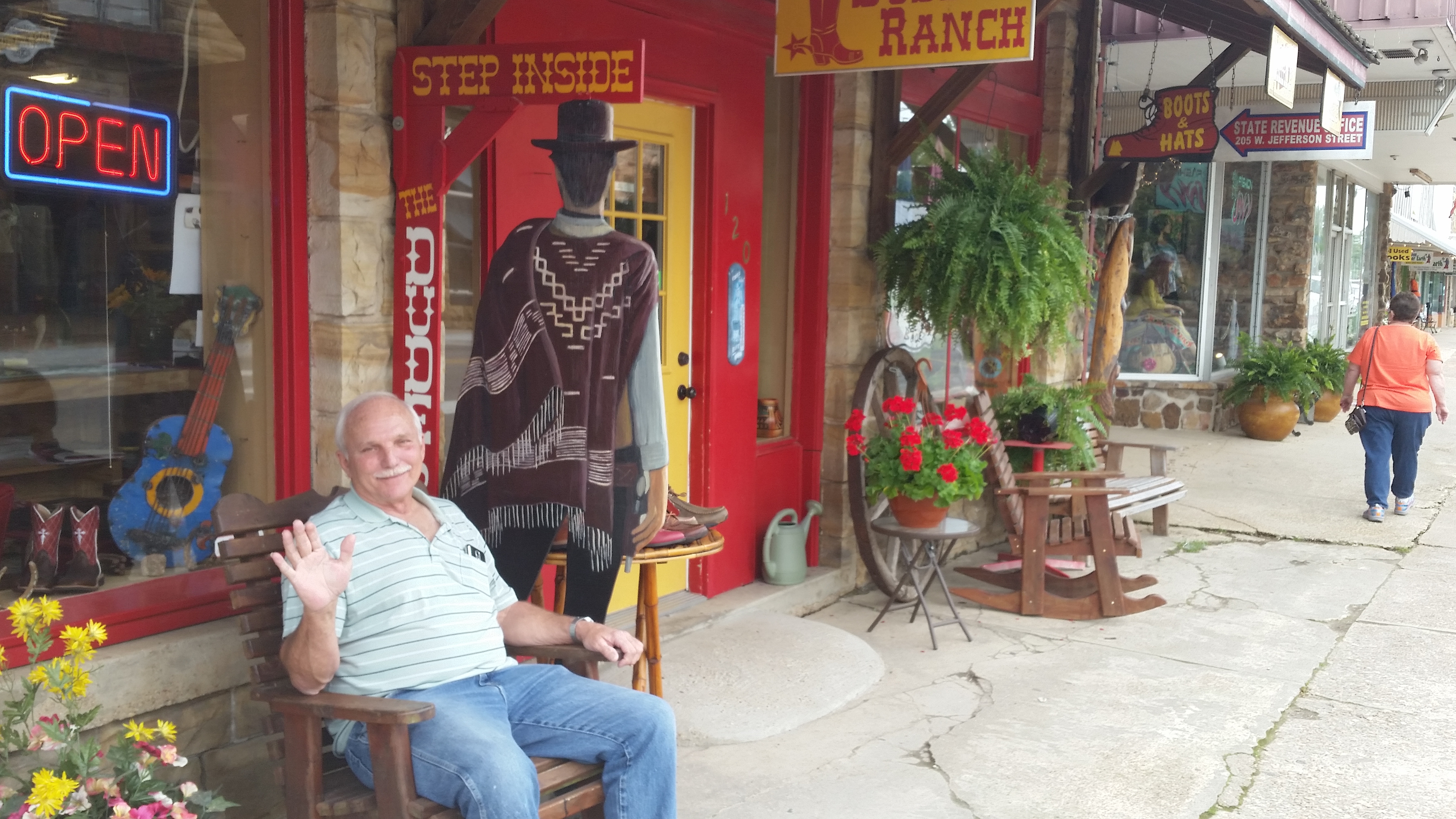 Thursday, May 14, 2015 – We’re staying in the park today but yesterday we went into the town of Mountain View, Arkansas. We walked around much of the downtown main street checking out the shops. Our RV park is a couple of miles outside of the town. It’s a beautiful drive with lots of mountainous scenery. Here’s a couple of pictures of the downtown area of town.