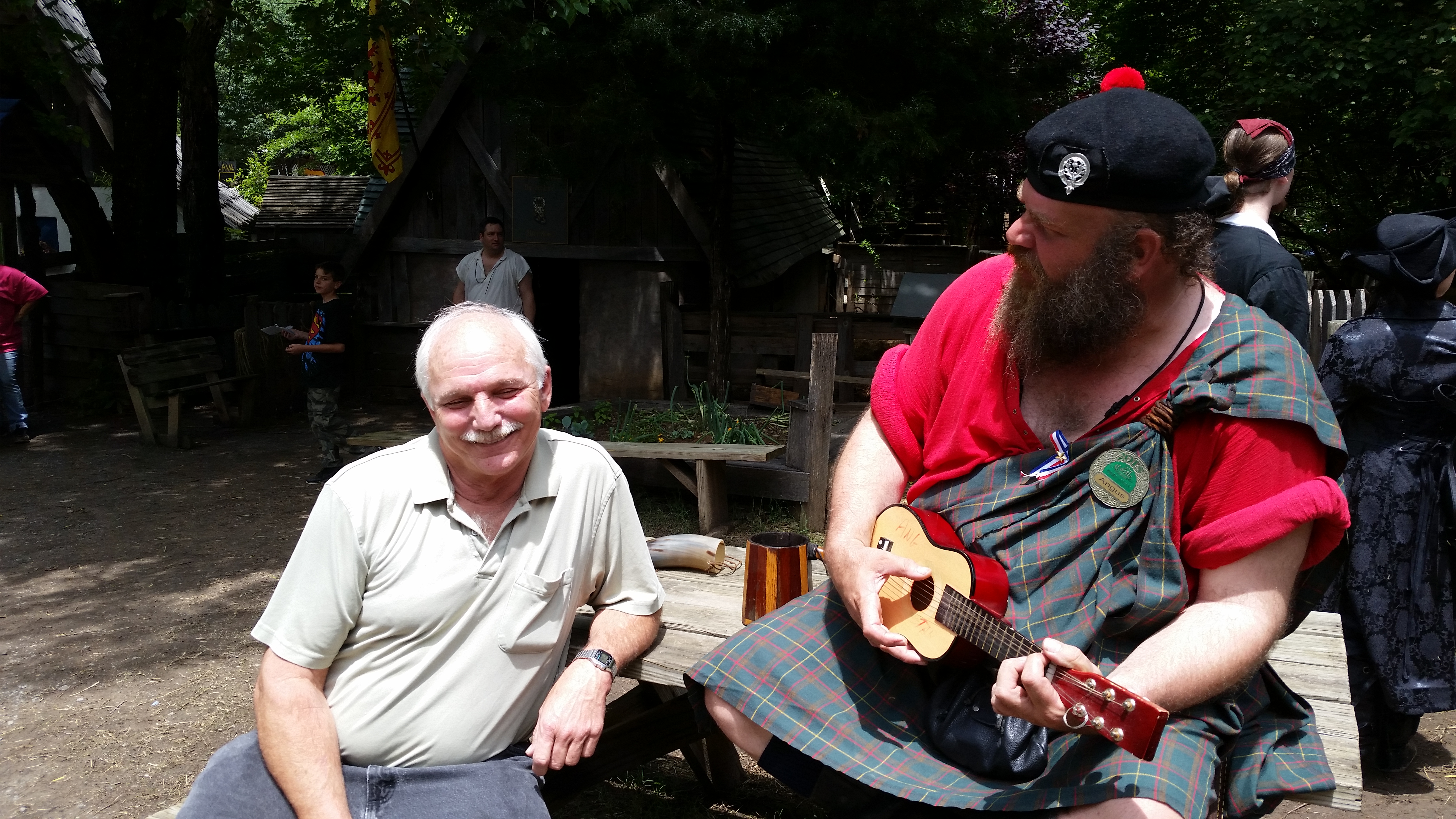 It’s surprising to see the large percentage of visitors wearing renaissance period clothing. Several of the small structures sold men’s and women’s clothing, corsets (!!), hats, chains and anything you’d need to dress like they did. This was their 20th annual event and it clearly has grown into a well oiled production. They even had people just sitting throughout talking in the old way of talking and visiting with whomever would talk to them. One man had Roy and I individually sit with him while he made up a song using our name!