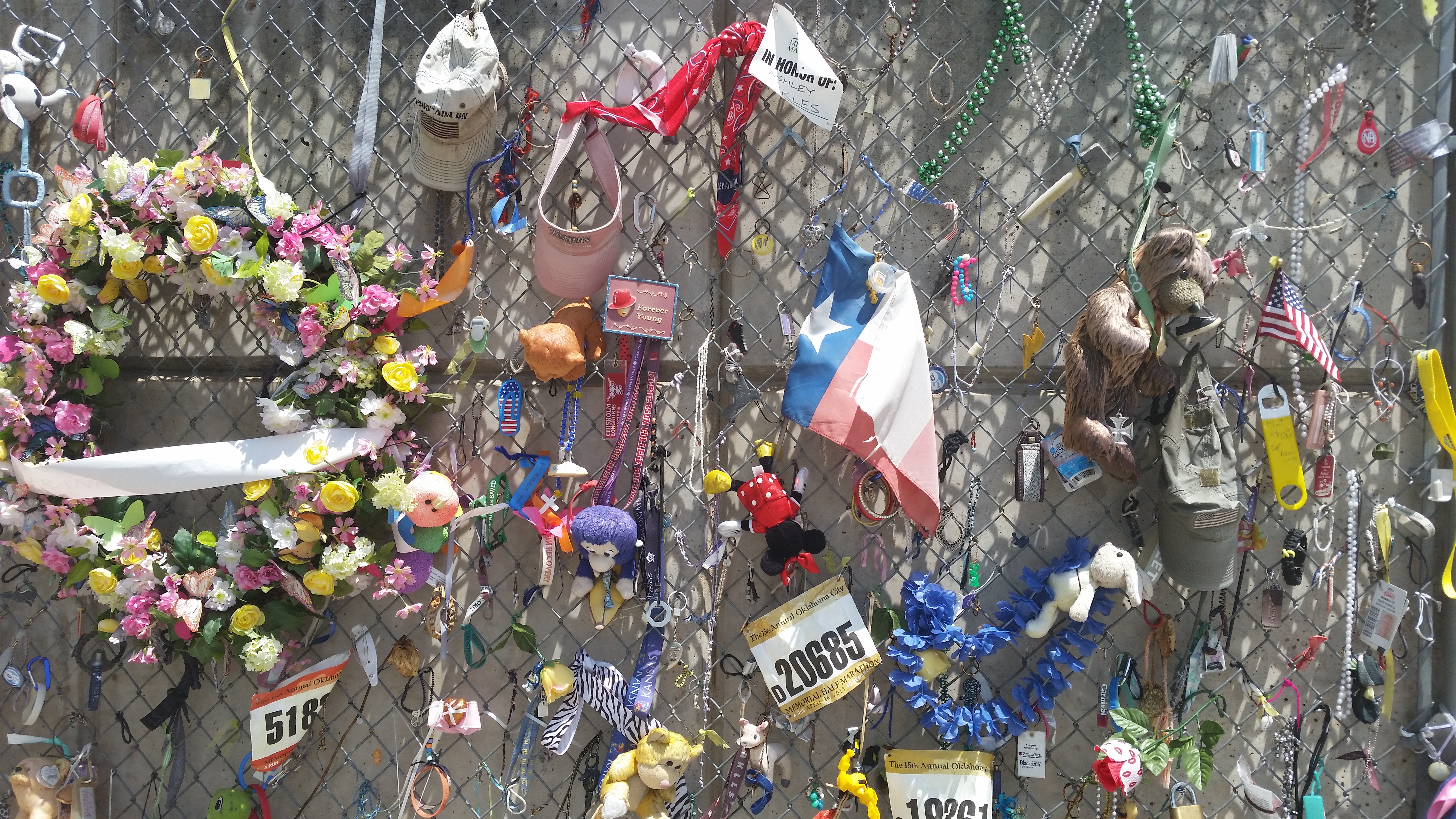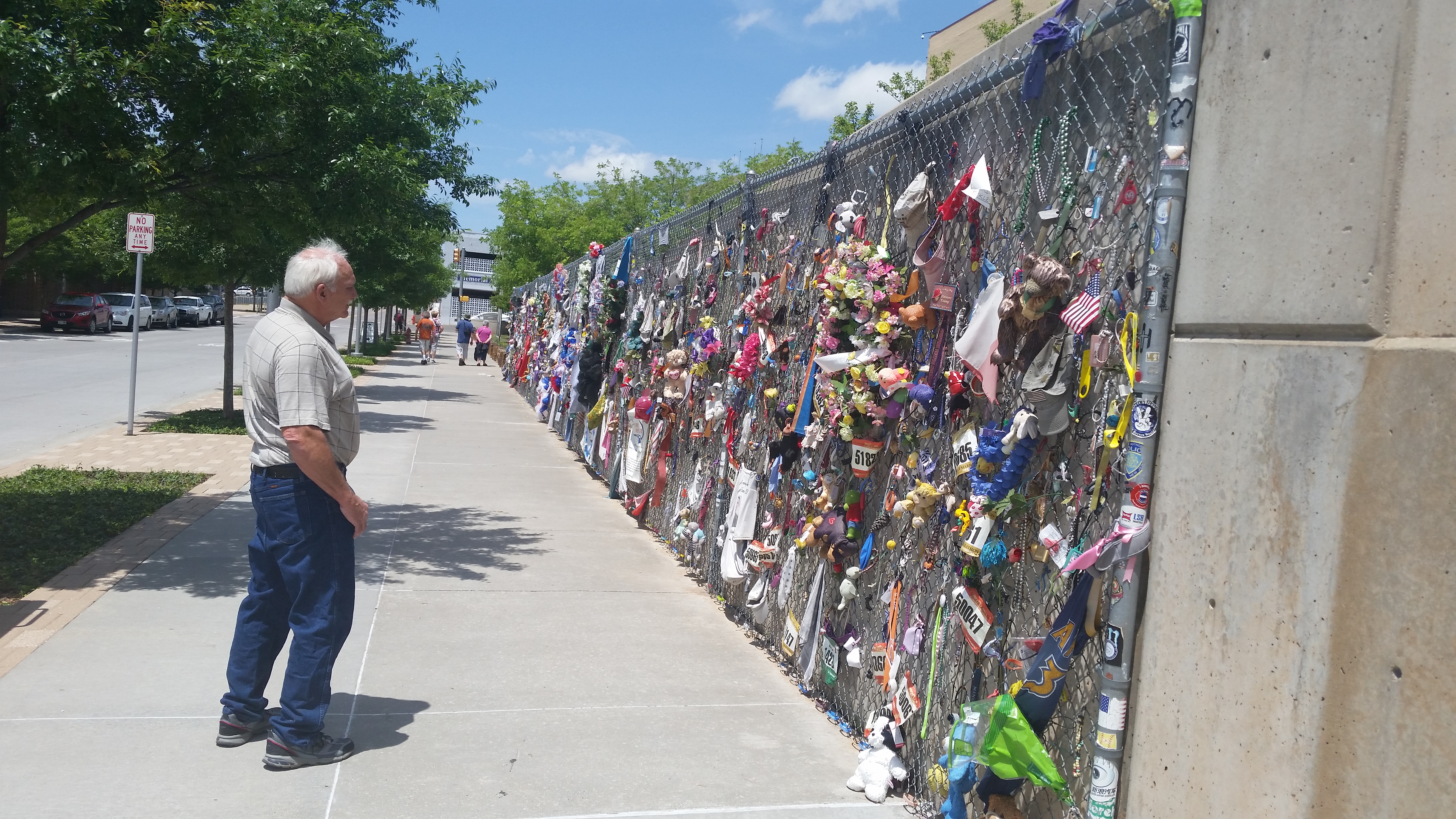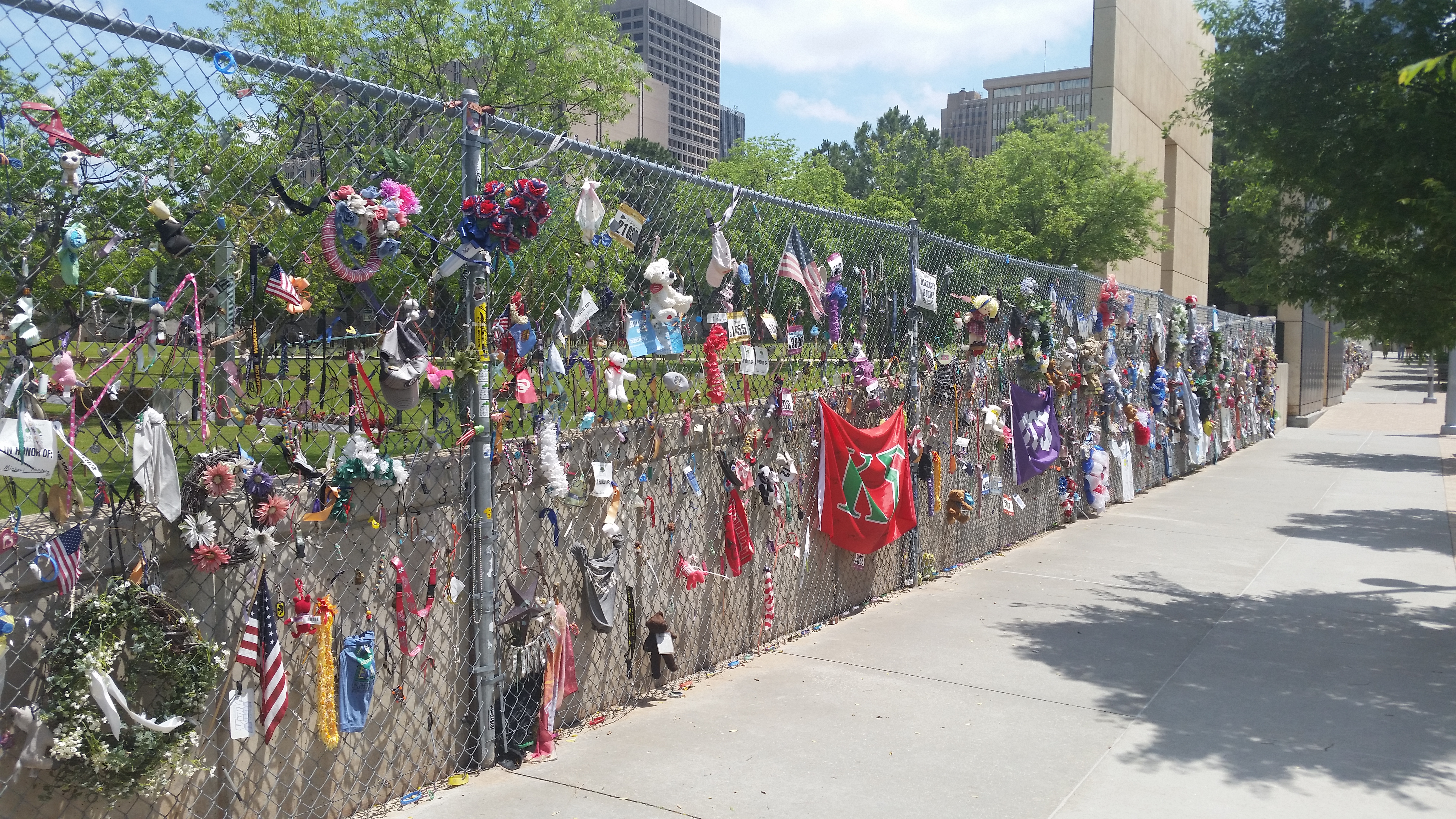 The first Fence was installed to protect the site of the Murrah Building. Almost immediately, people began to leave tokens of love and hope on the Fence. Those items now total more than 60,000 and are collected and preserved in our archives. Today, more than 200 feet of the original Fence gives people the opportunity to leave tokens of remembrance and hope.