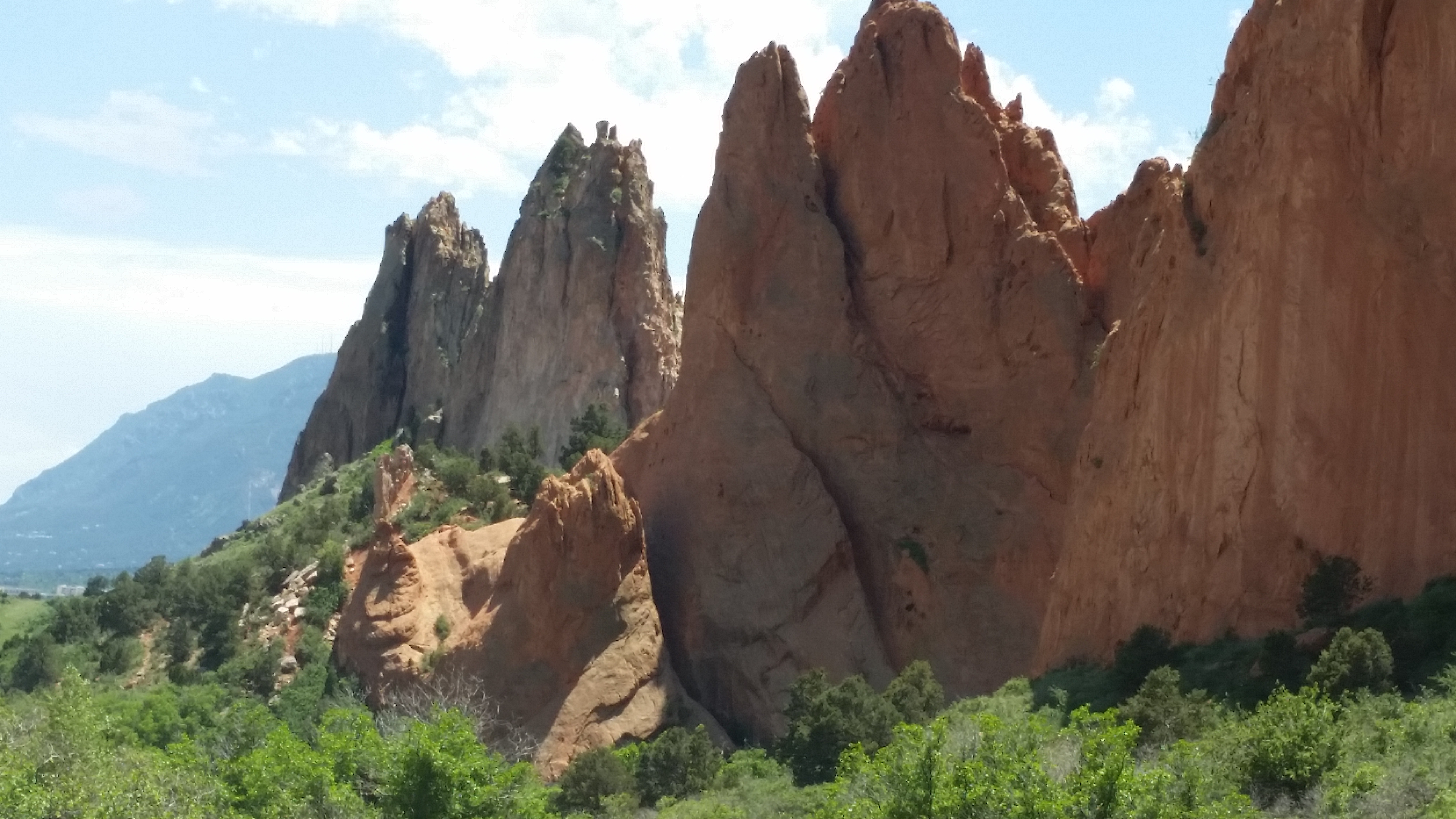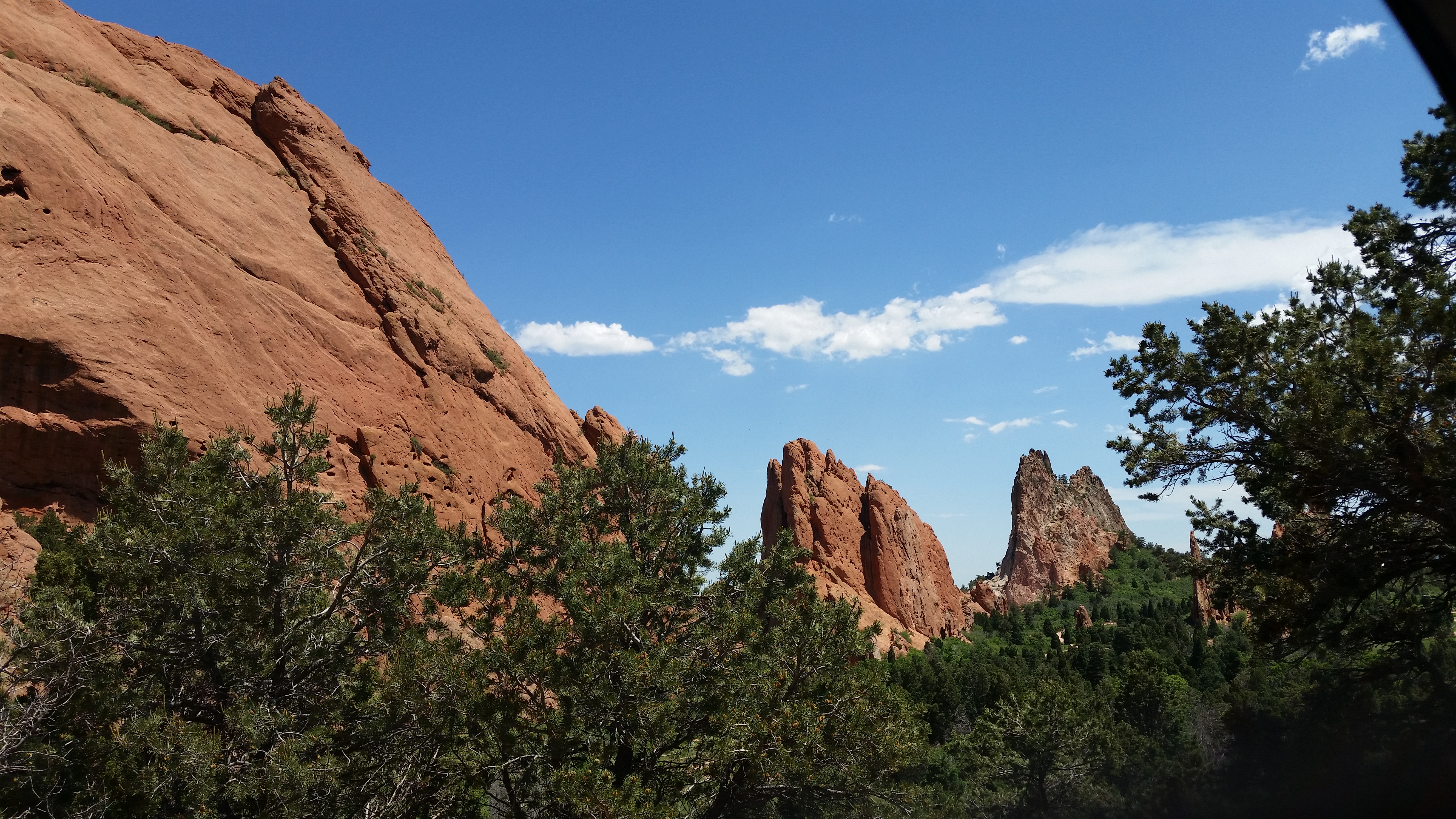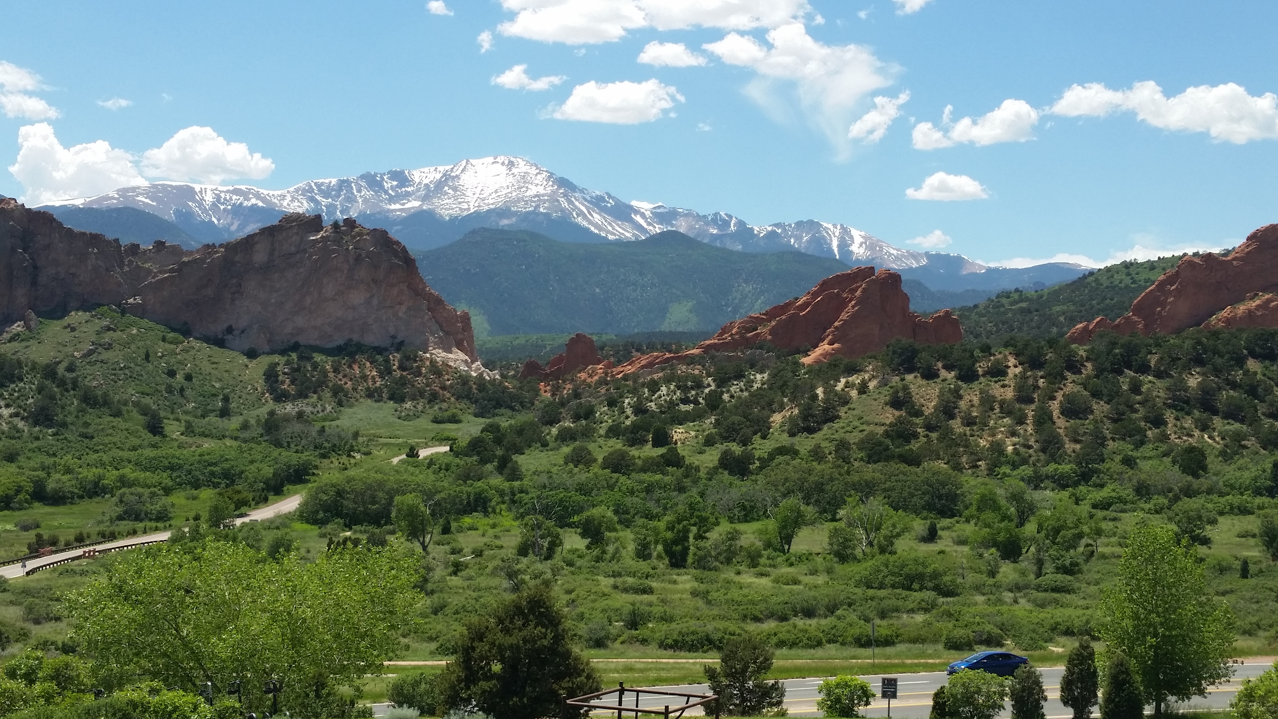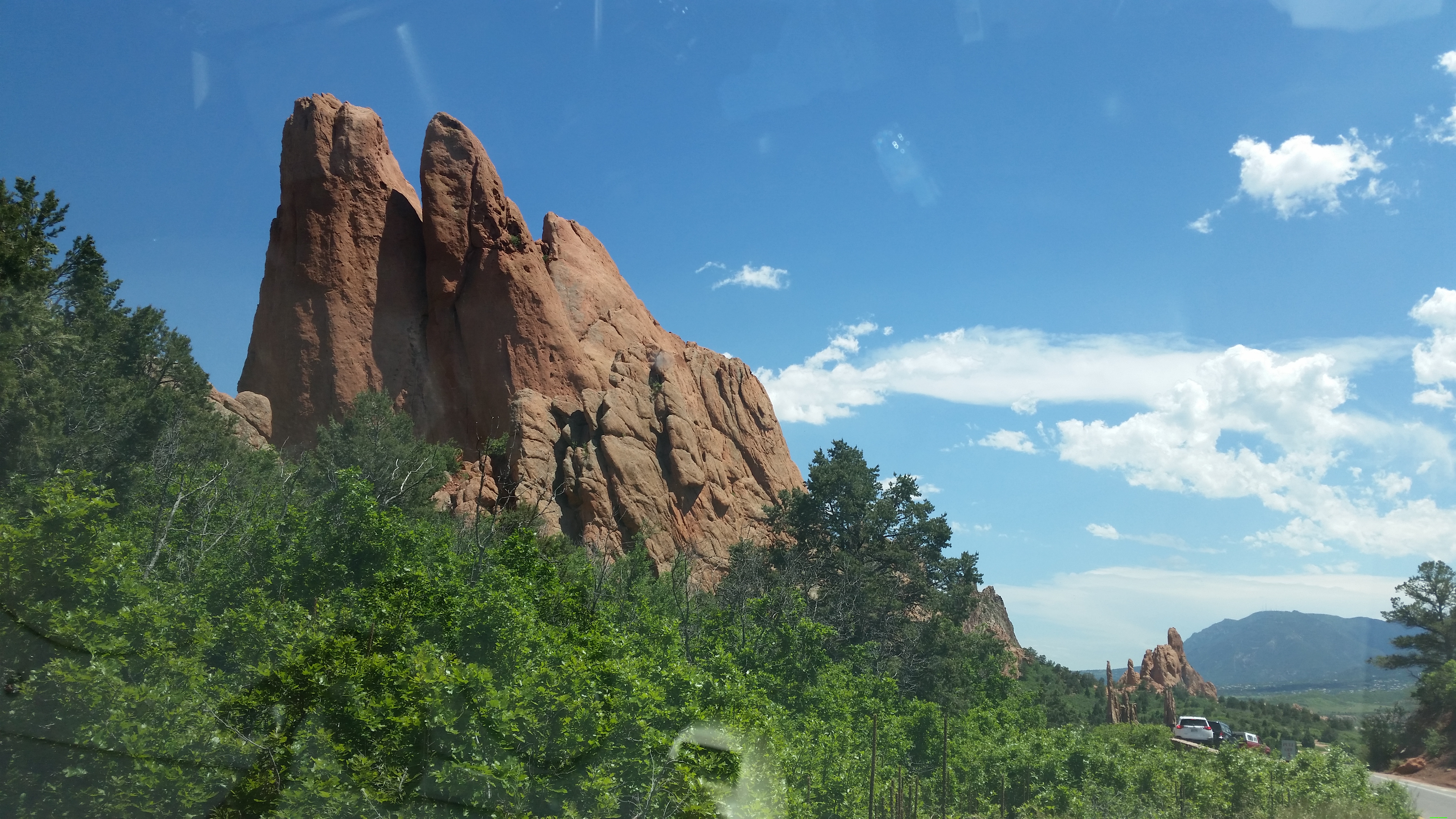 20150617_164941Next stop was the Garden of the Gods.  I believe there is only one God so the Garden’s name goes against that but it was a beautiful drive through the park. 20150617_132722Garden of the Gods Park is a registered National Natural Landmark. Imagine dramatic views, 300′ towering sandstone rock formations against a backdrop of snow-capped Pikes Peak and brilliant blue skies. This world class Visitor & Nature Center is the most visited attraction in this area.  It is a city park so visiting it was free.