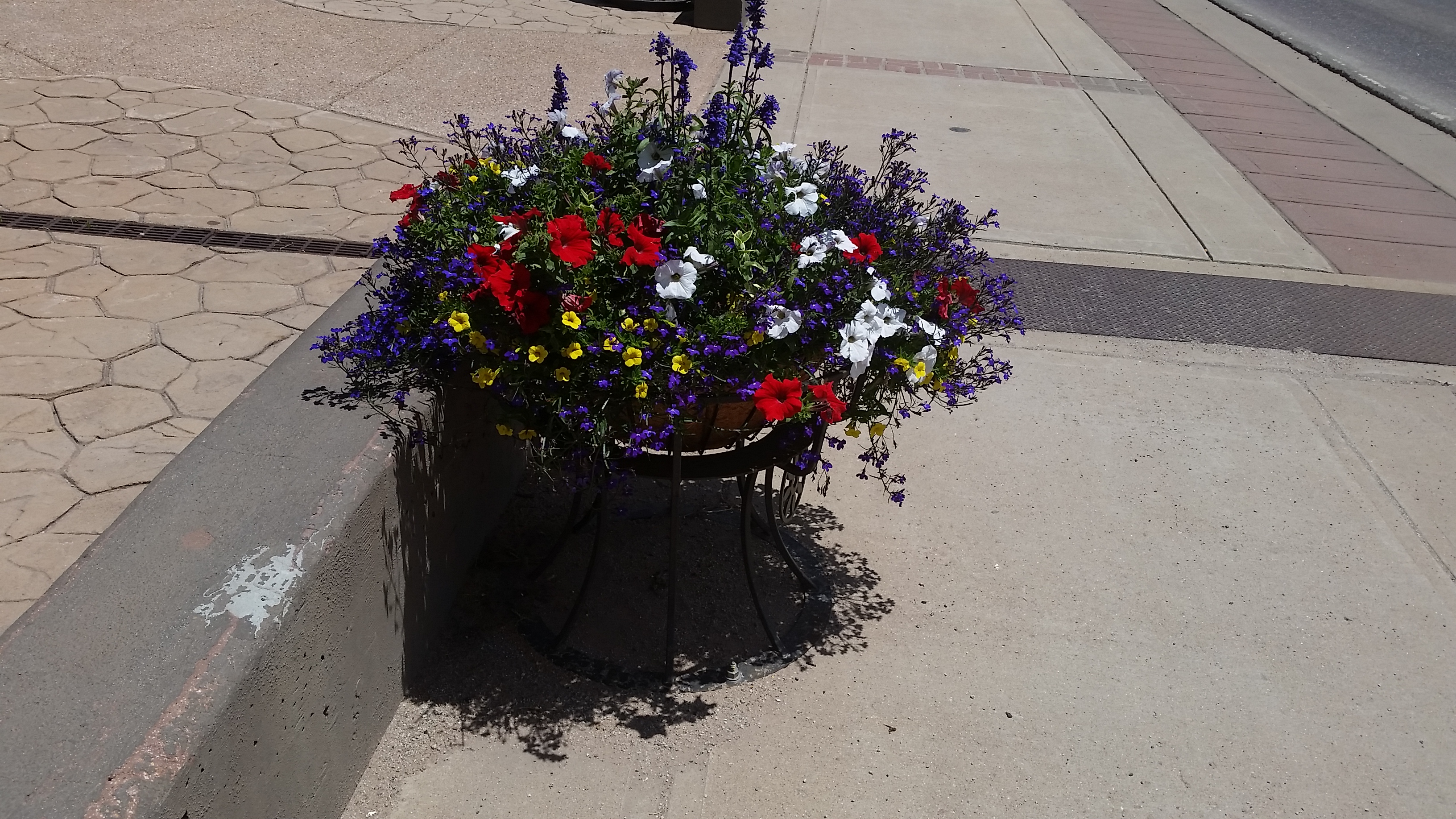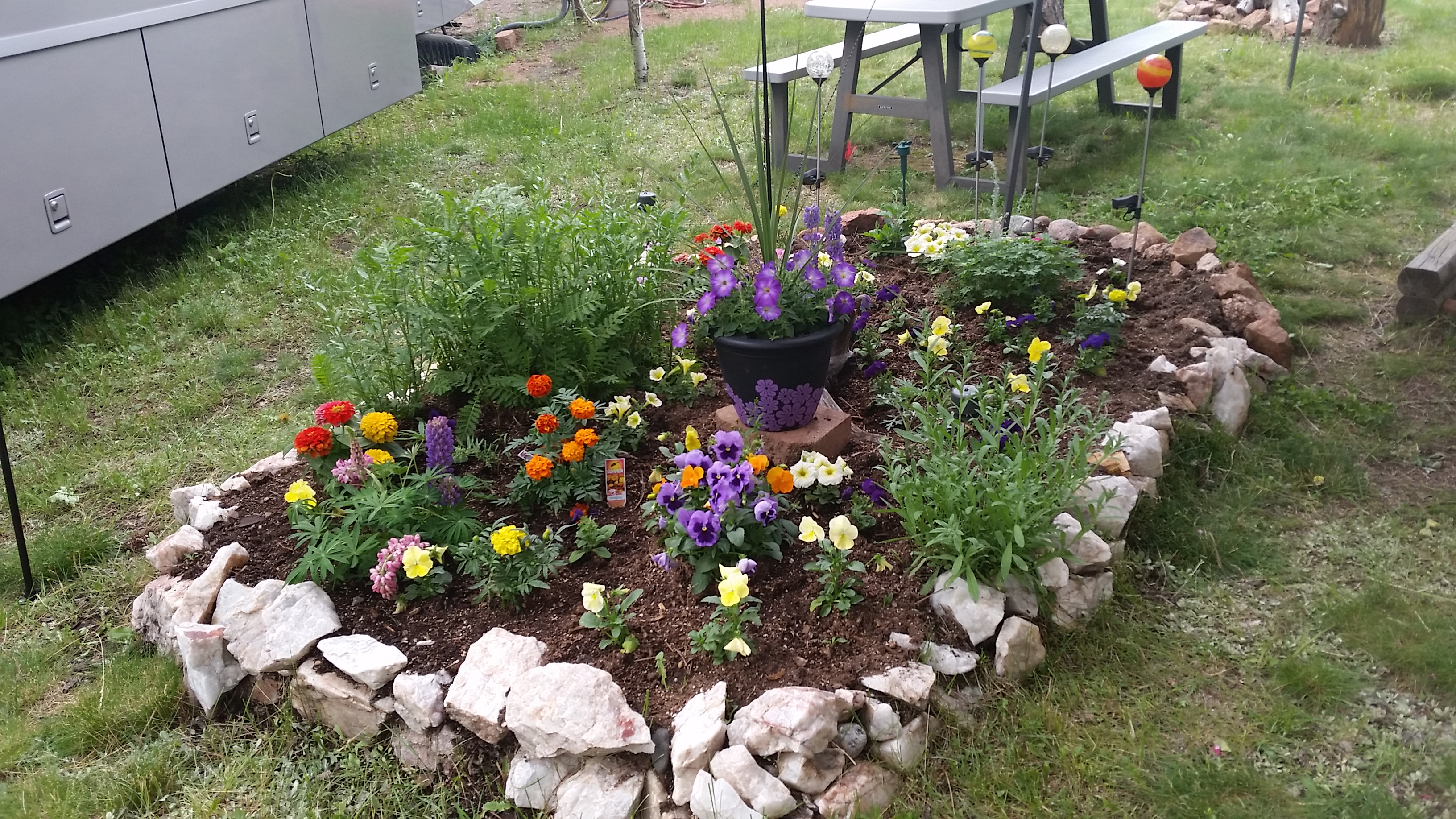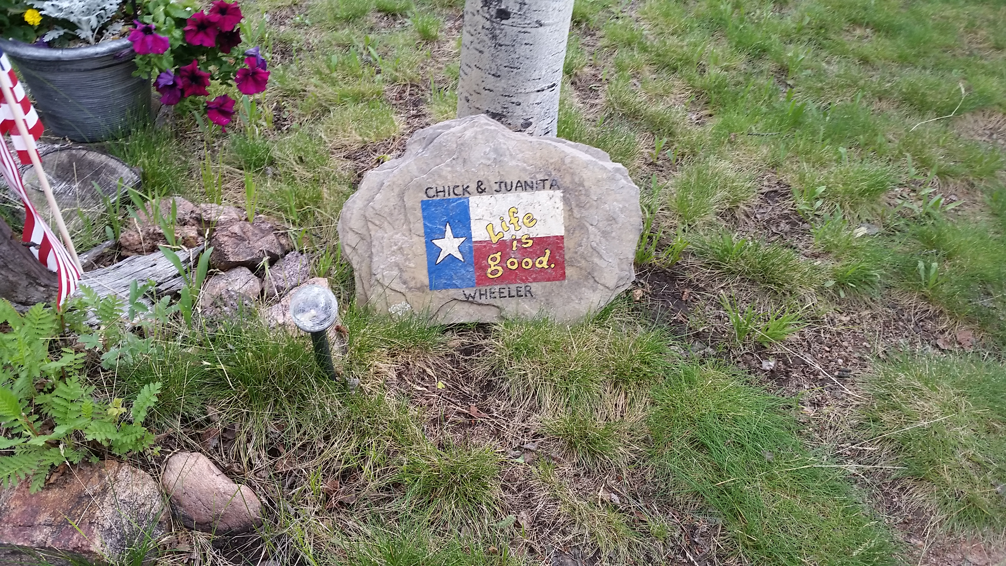 Several of their lawns are decorated with flowers, flags and other decorations I mentioned in my last post. I could really imagine coming here every year and staying a while. The temperature here is way below what it was in Monument even though that is only a few miles away. High yesterday was low 60s and low was high 40s!!! Very weird for being so close to where it was in the high 80s but we like it. Roy obviously enjoyed it here today!