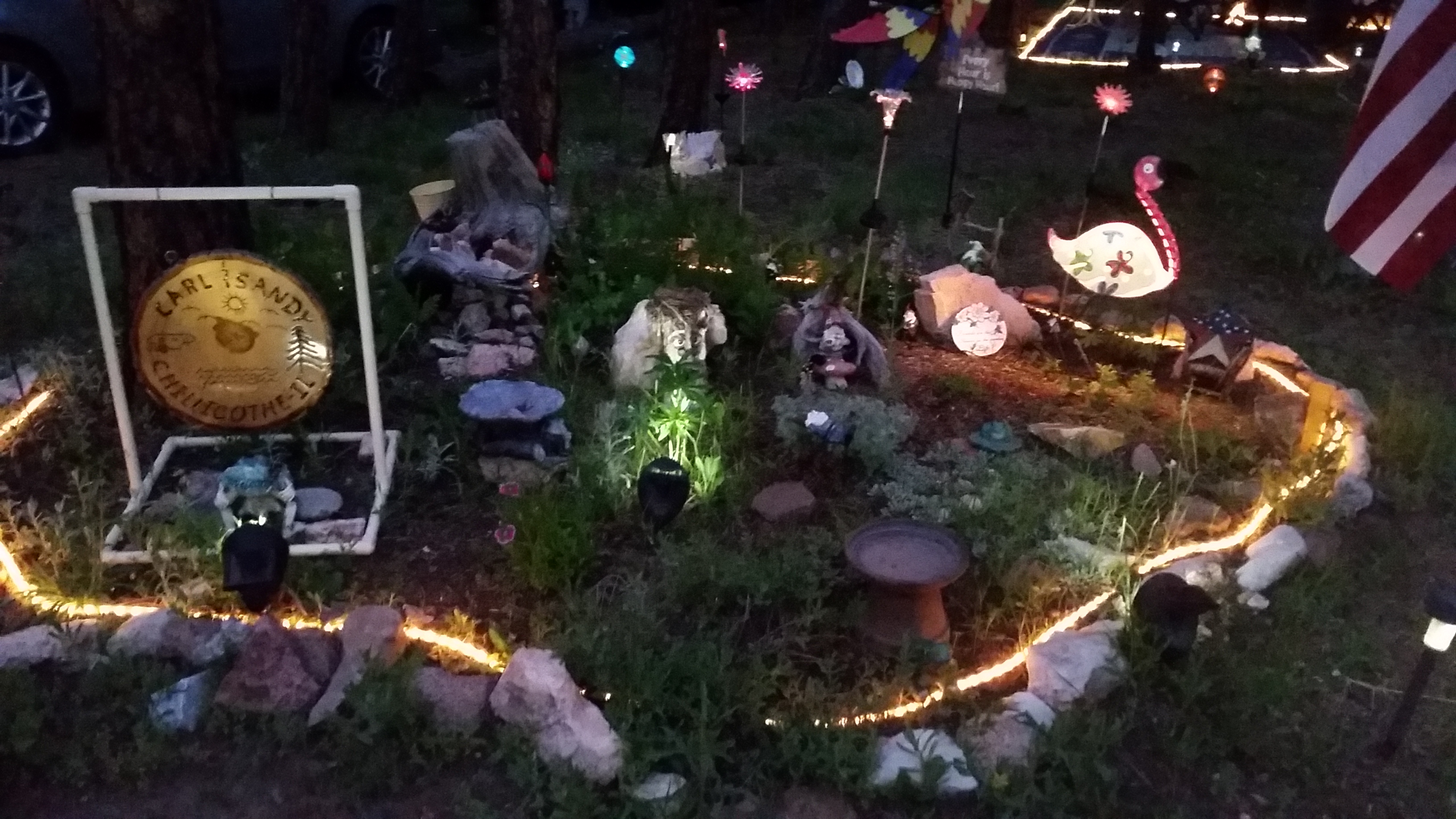 These pictures are from some of the same spots after the solar lights start shining in the evening.