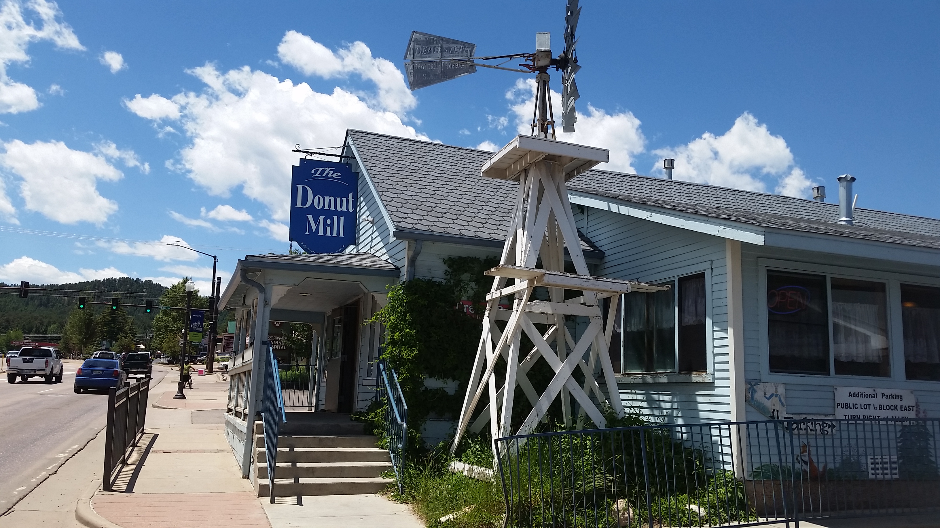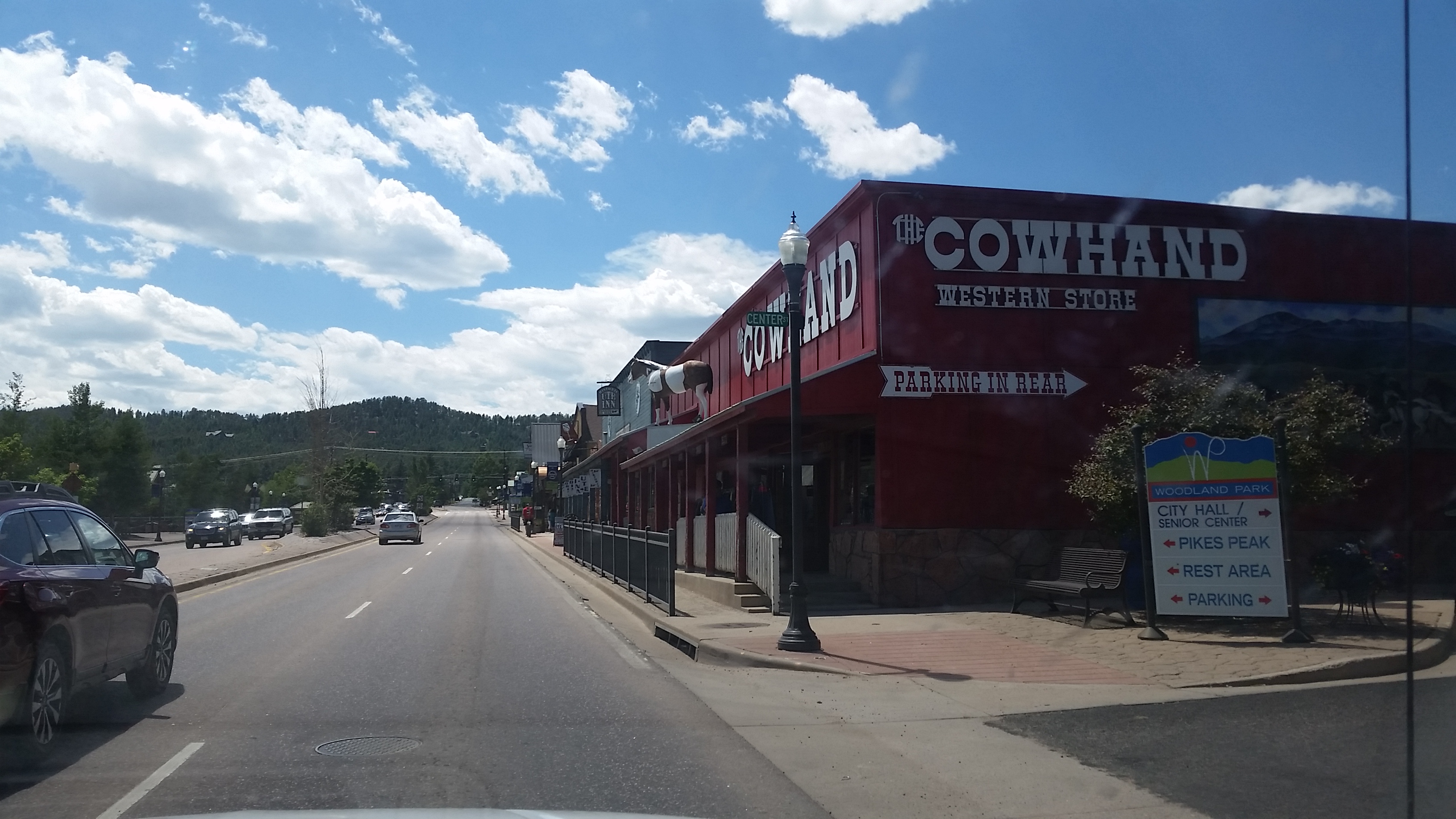 During the day on Saturday we drove into town, Woodland Park, Colorado. It is a lovely town with beautiful views of the mountains. Here’s some pictures we took today. We bought some over sized donuts at the Donut Mill which is one of the pictures below.