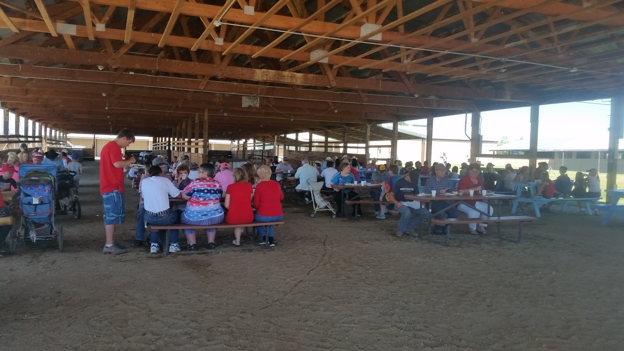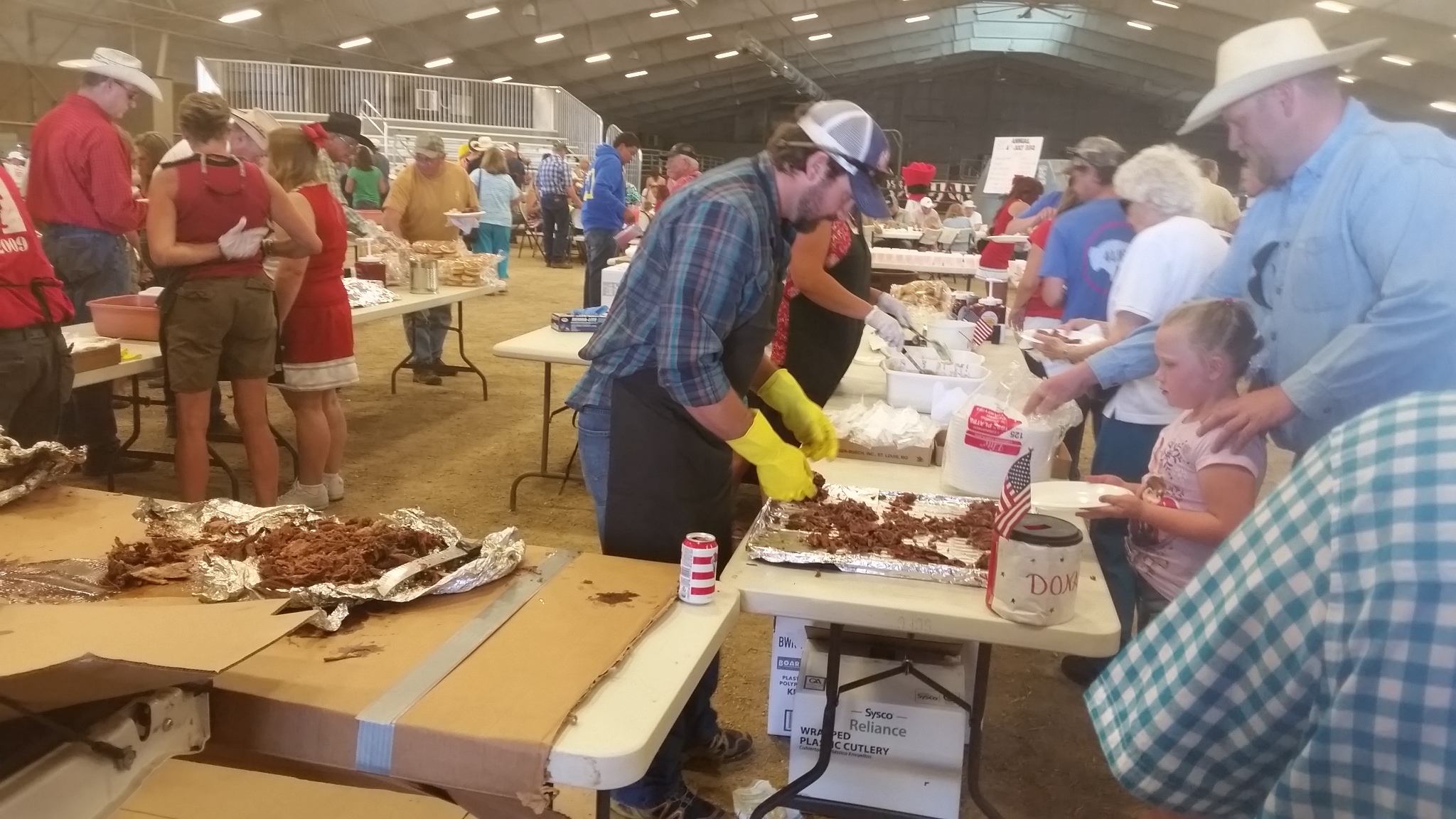 At least a thousand people ate at the Big Piney Chuckwagon BBQ today.  It was held at the Sublette County Fairgrounds in a beautifully set up building.  Whole families – grandparents, children and grandchildren – came to the event in droves!