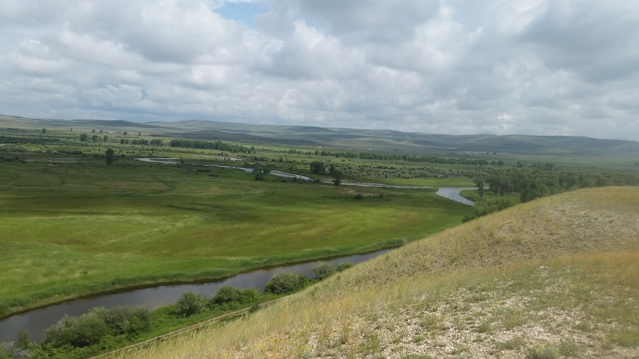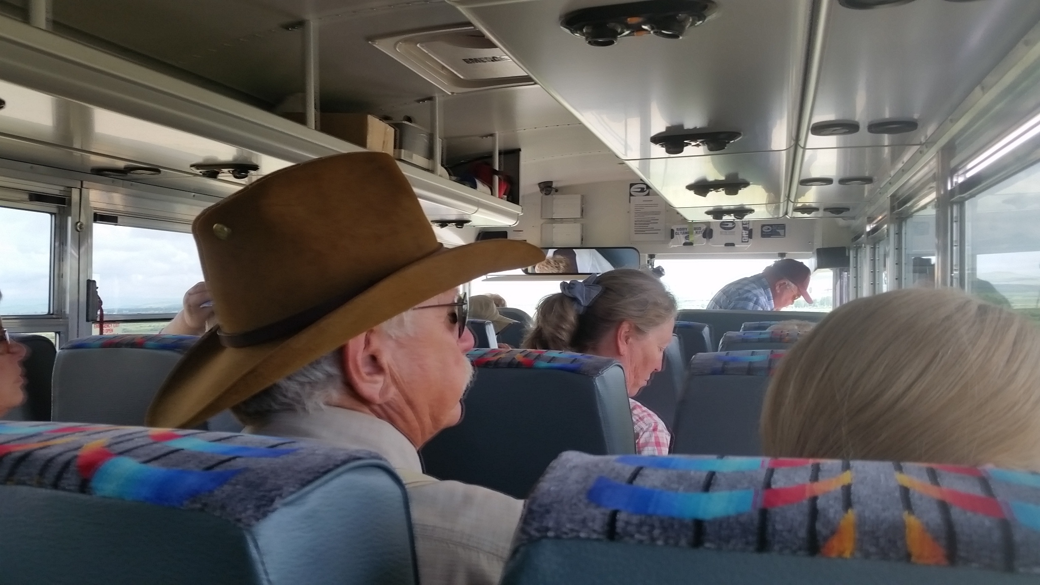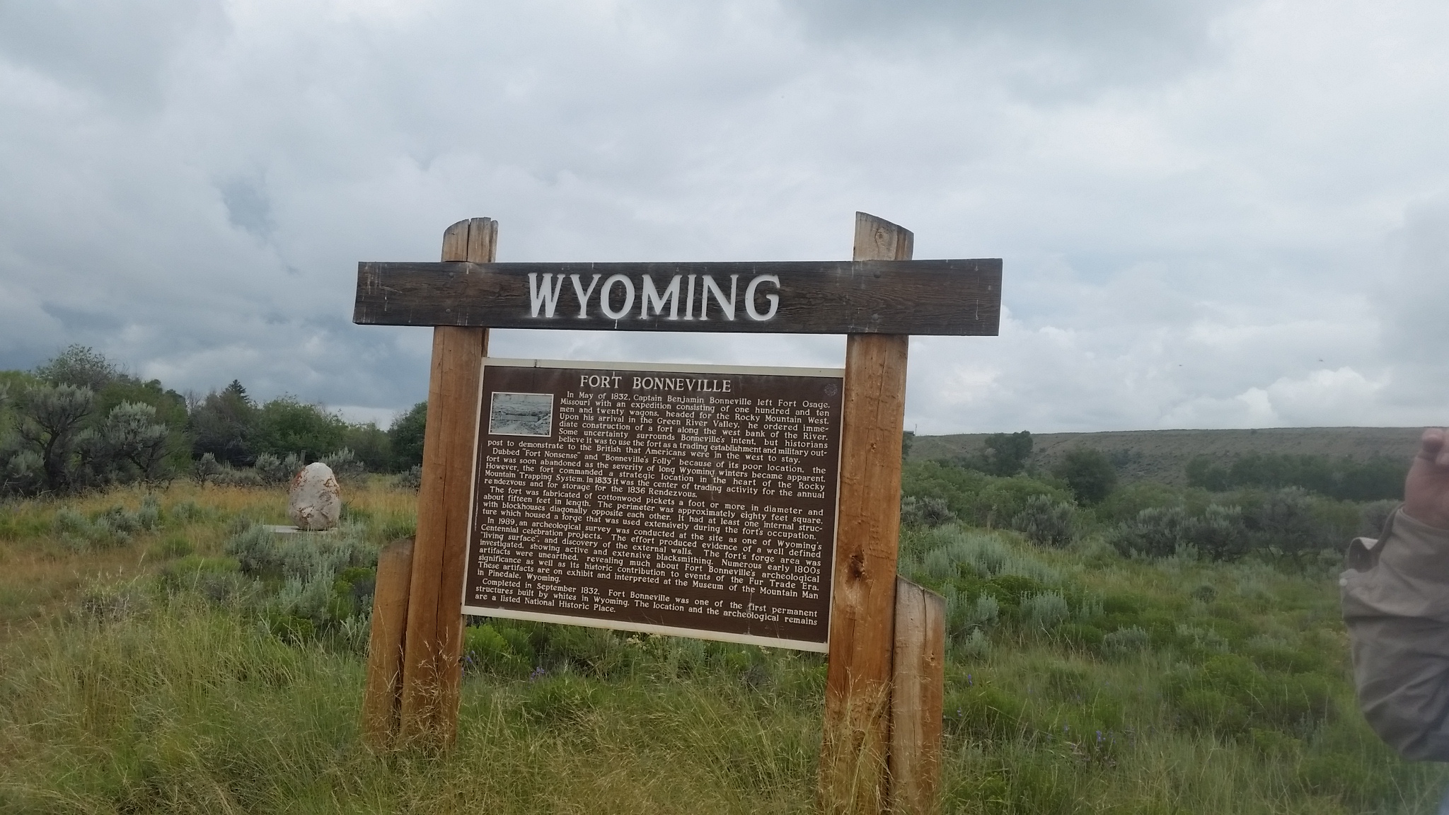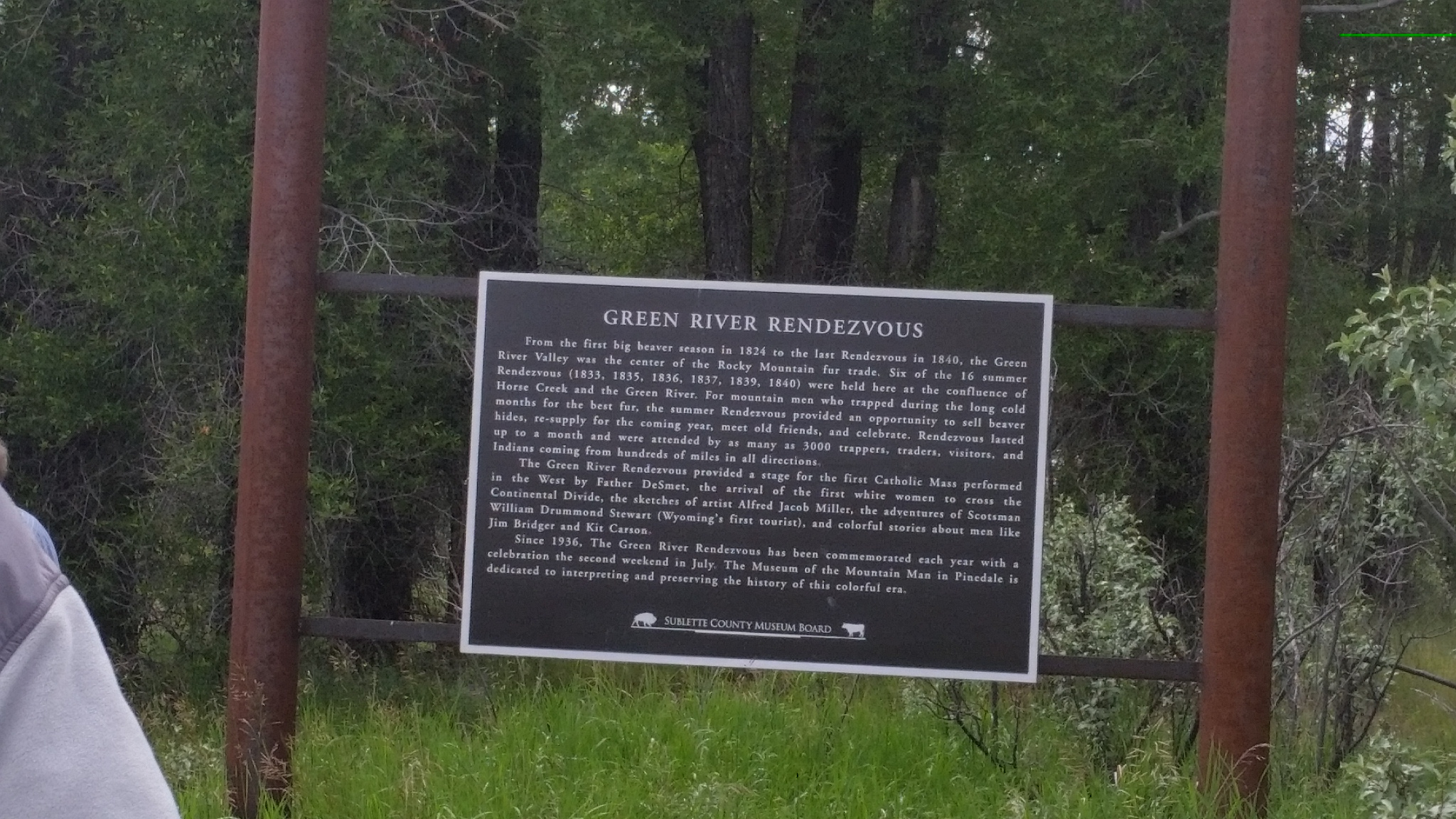 This year’s event is the 80th annual Green River Rendezvous and the historical tour took us to original fur trade sites to hear unique stories of the legendary mountain men and Native Americans who traded and settled in the Upper Green River Valley. Led by Rocky Mountain Fur Trade historian, Jim Hardee, and two other vey knowledgeable men, Clint and Glenn. We saw monumental attractions such as Wyoming’s second largest lake Fremont Lake, Trapper’s Point, De Smet Monument, Fort Bonneville, and the New Fork Race Track. Transportation was provided by the local school district. Believe me these were not the school buses I remember. They had comfy cushioned seats, air conditioning and lights. Kind of like riding in a Greyhound bus but for children!