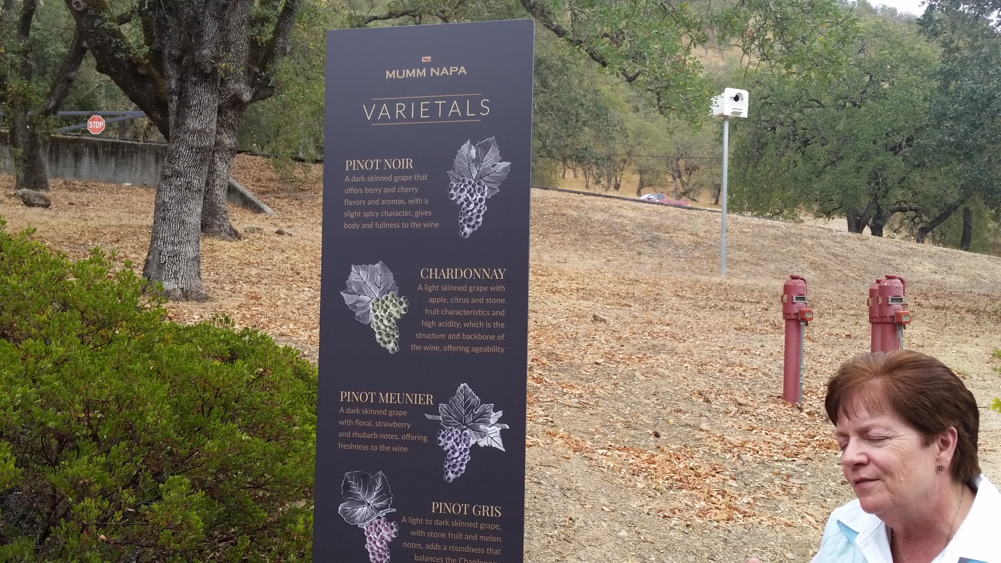 After doing a lot of research and getting input from friends about wineries in this area we chose to go to Mumm Napa winery for a tour and tastings. Most if not all of the wineries use to offer free tours and tastings. Now, few have tours and all charge for tastings. That’s why we reduced the number of wineries to visit from three to one!