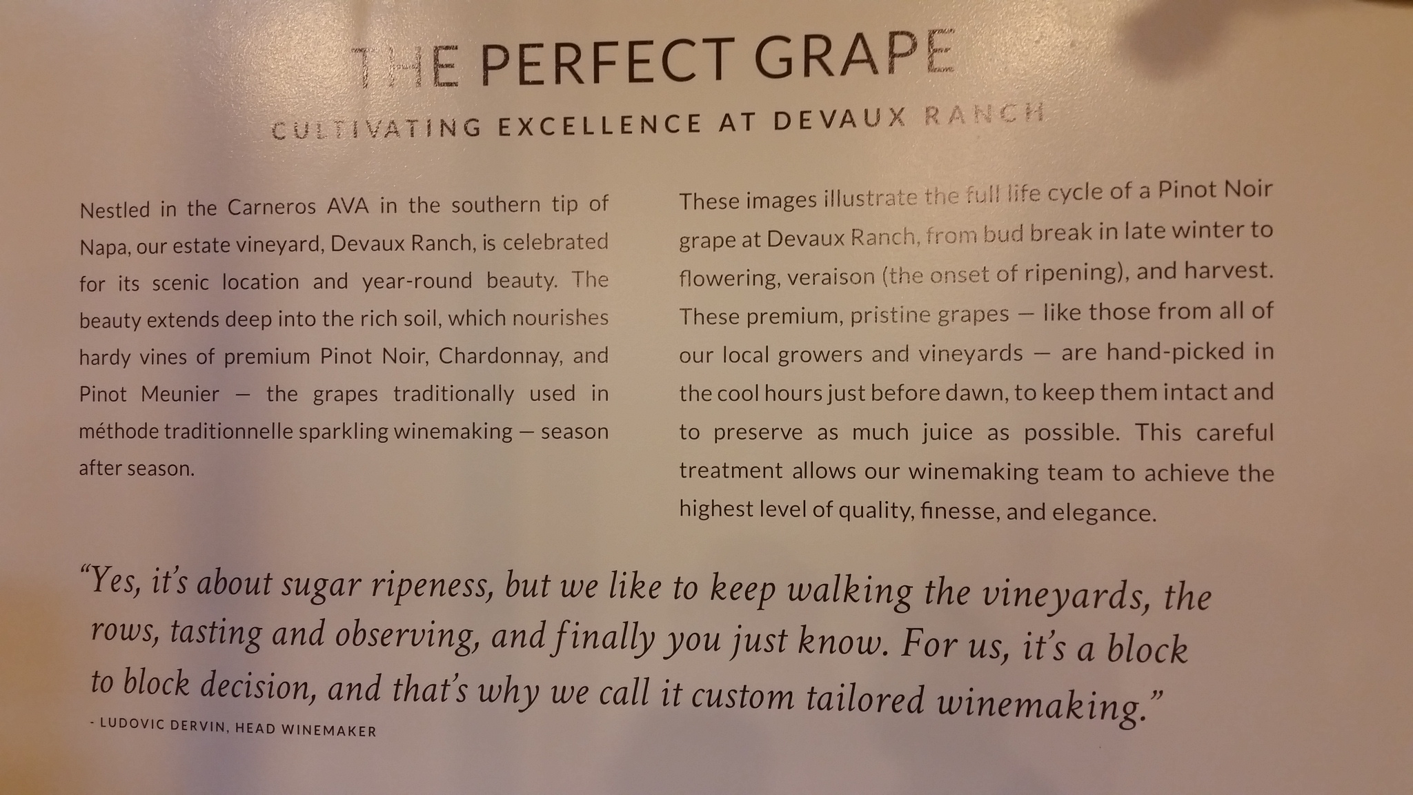 Mumm Napa is a beautiful facility with indoor and outdoor wine tasting areas. It also has an art exhibit area which we enjoyed while waiting for the tour to start. Our tour guide was quite knowledgeable and share a lot with us about the history of Mumm Napa and the process they go through to create their sparkling wines.