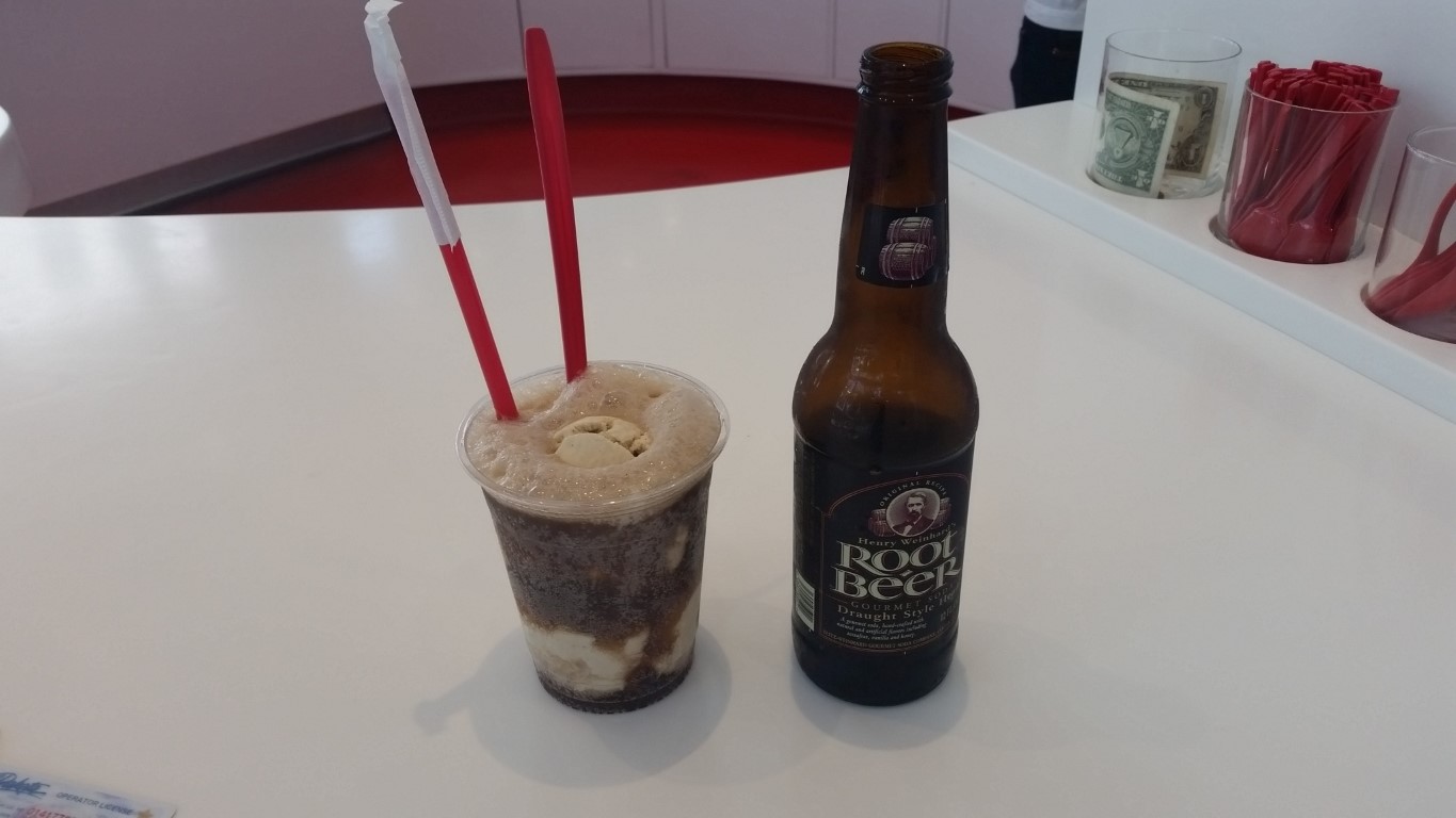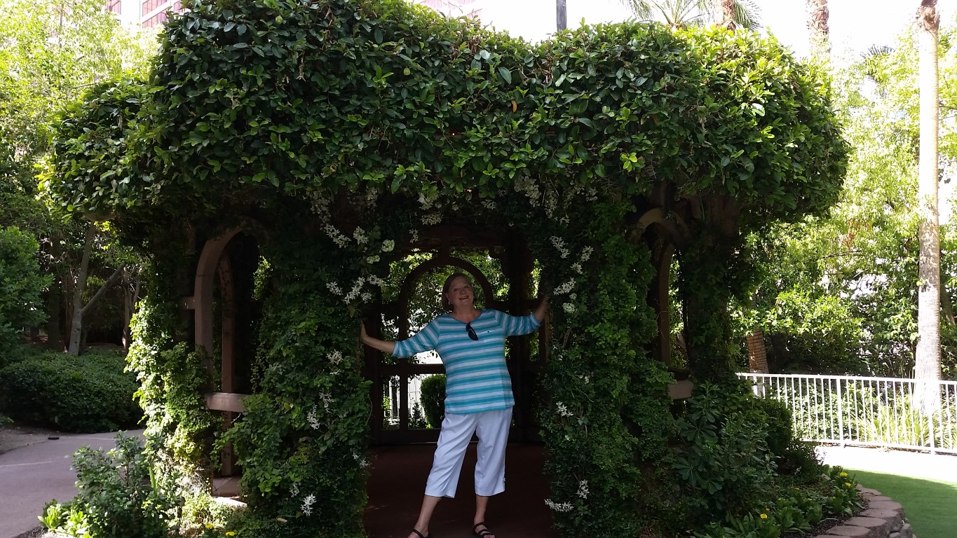 From the Flamingo Casino we went to Sprinkles Cupcakes an upscale cupcake, doughnut and soda shop where I got a root beer float and Roy got a coke. Mostly we got to rest our legs for a bit in the shade. It was 100 degrees all day which didn’t help our growing tiredness but since we were in the shade of the buildings a lot it didn’t feel 100. Thank Goodness~