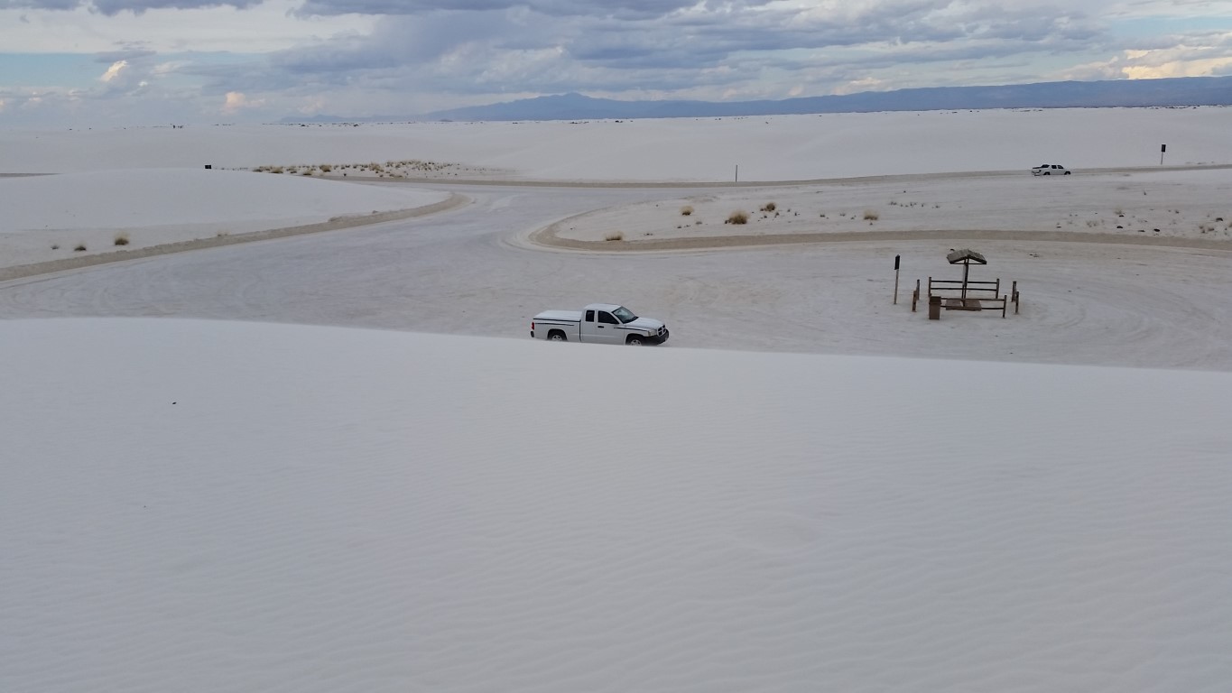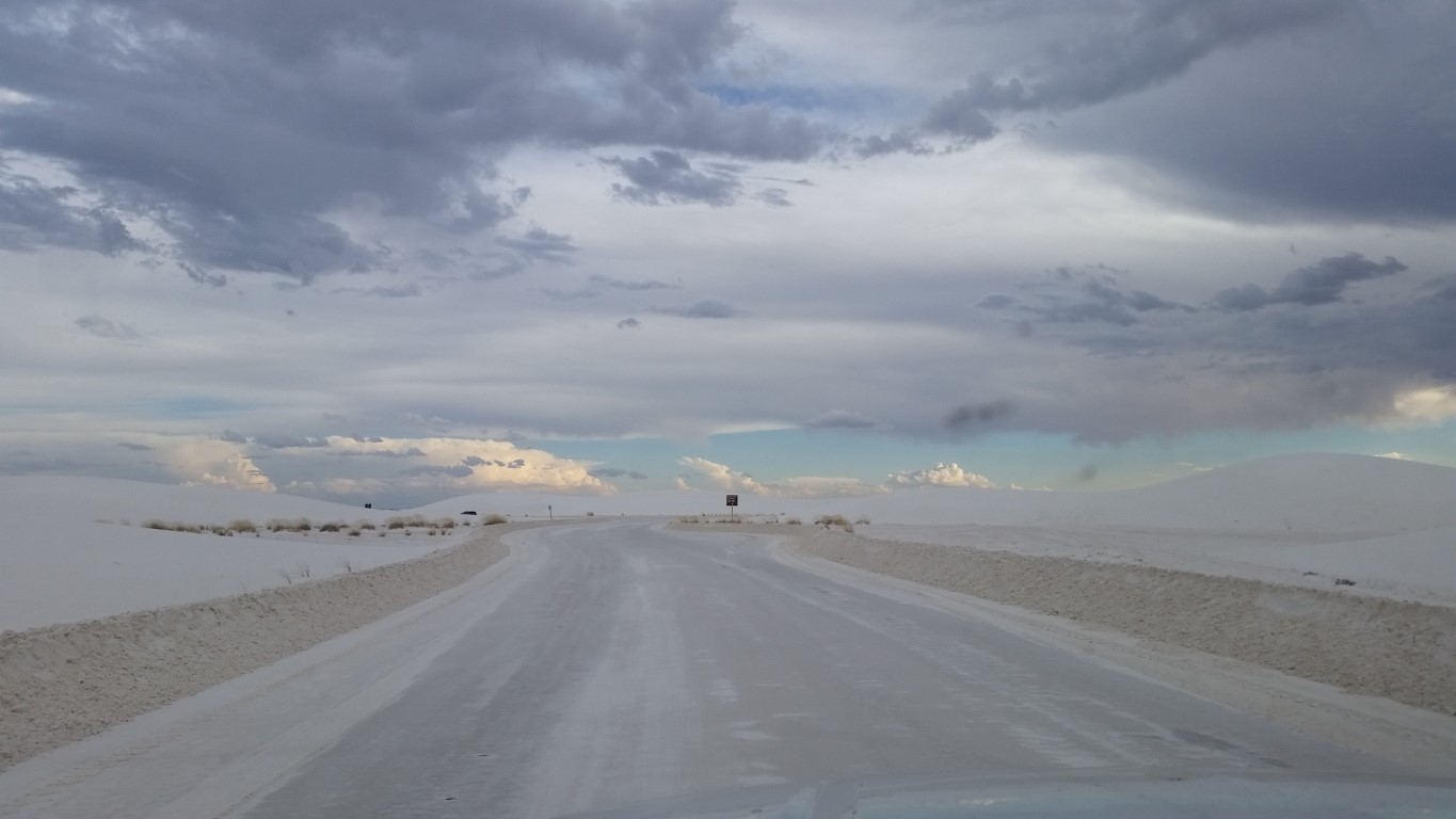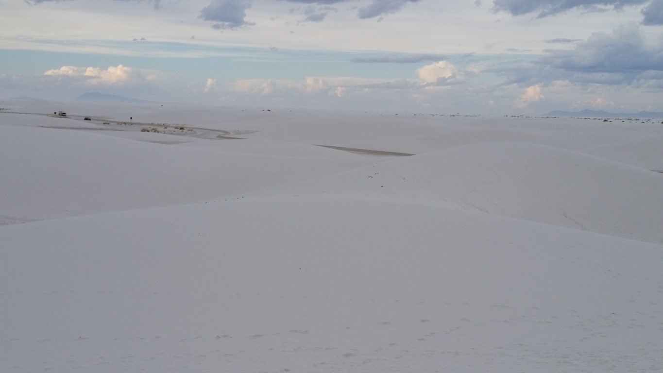 The seemingly never ending road that takes you through White Sands. You stop wherever you want and climb a hill!