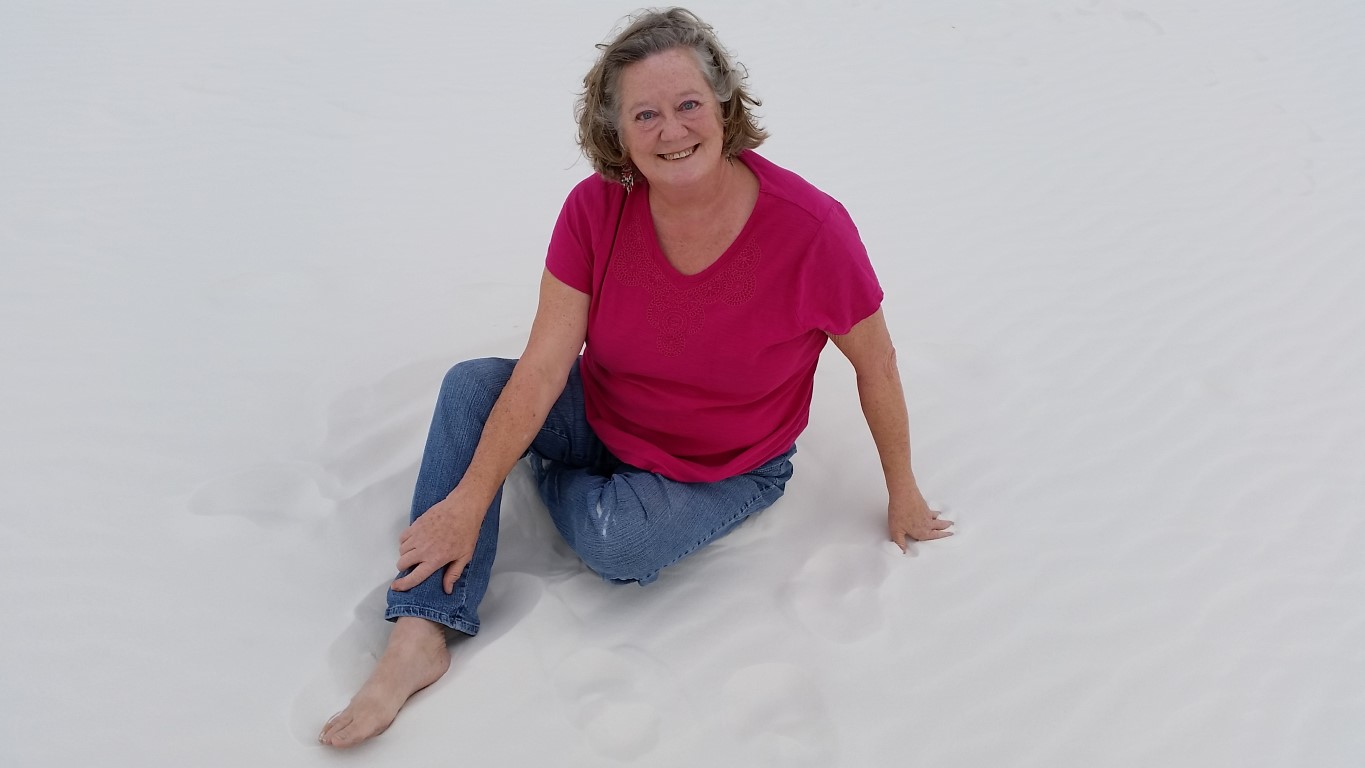 In today’s post I’ll share with you White Sands National Monument in New Mexico. White Sands is a spectacular landscape shaped by natural forces and is like no other place on earth. Located 13 miles west of Alamogordo, it is the largest gypsum dune in the world. It is over 275 square miles in size. Only the top few inches of the gypsum dunes are made of loose sand. Rainwater falling on the dunes dissolves some of the gypsum and cements the sand grains together, creating a crude form of plaster of Paris. This makes the white sand dunes easy to walk on.