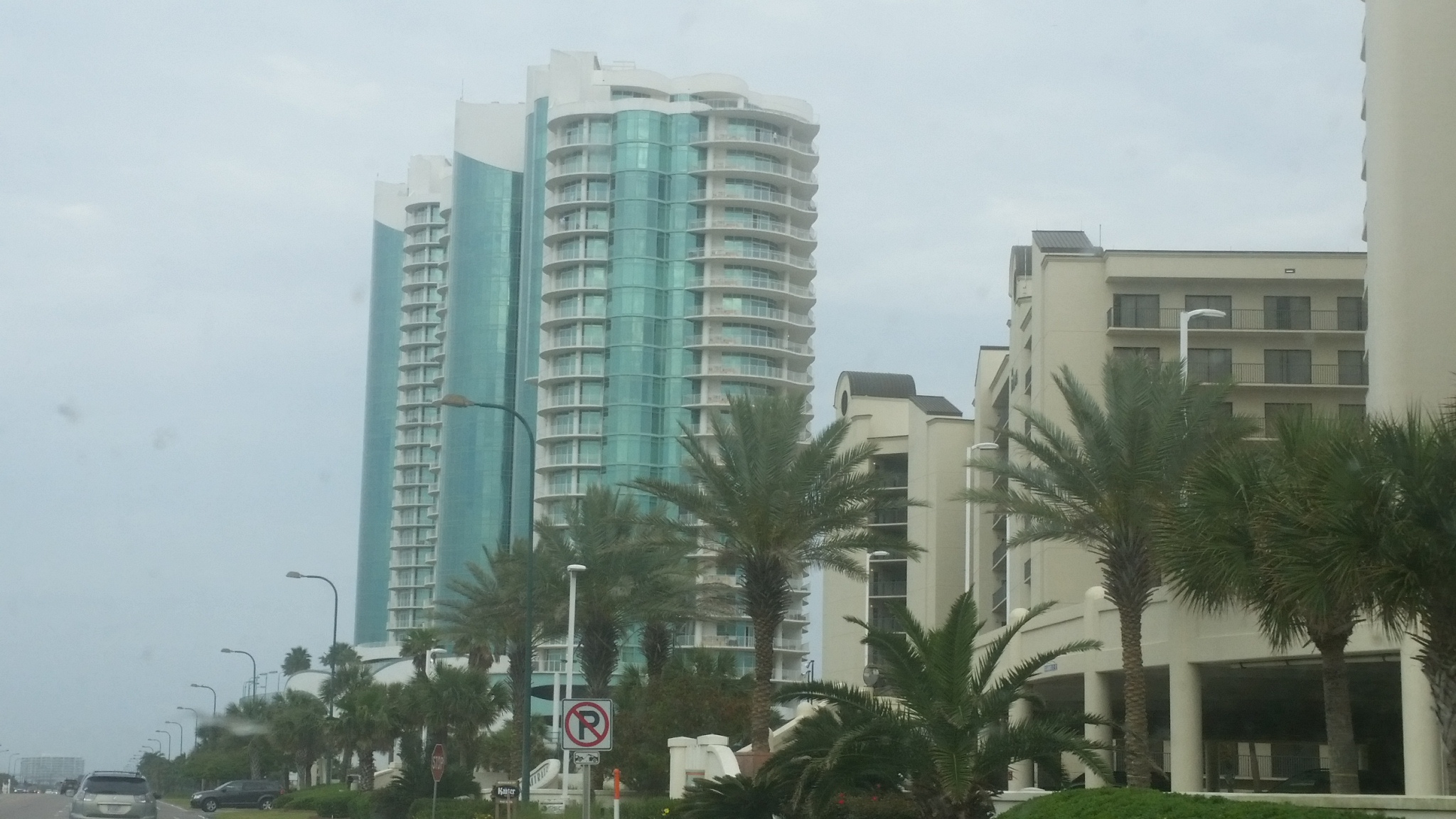 Roy and I went to B & D Auto Service yesterday to schedule an appointment with them to work on our motor home’s dashboard air conditioner. After taken care of that we headed towards Orange Beach. It is a beautiful, beautiful beach where we played a bit and scooped up on a bunch of seashells! There are huge condominiums all over the place! Here some photos of the condos and us on the beach!