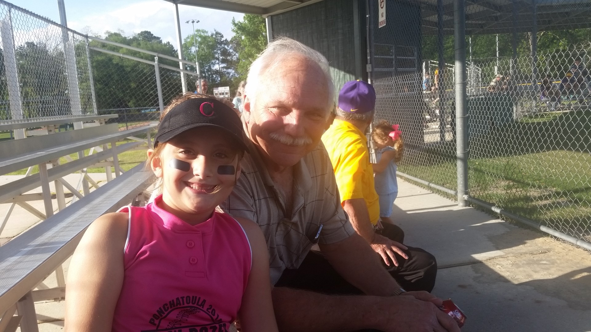 Liz’s family (Liz is Madisyn’s mom) were there to cheer Madisyn on! She’s so new at this playing the game, has so much energy and just loves to have fun doing it! Her daddy Chip use to pick clovers in the outfield when he was little and Madisyn did her own version of being antsy and wanting to do something when she was on defense in the field!
