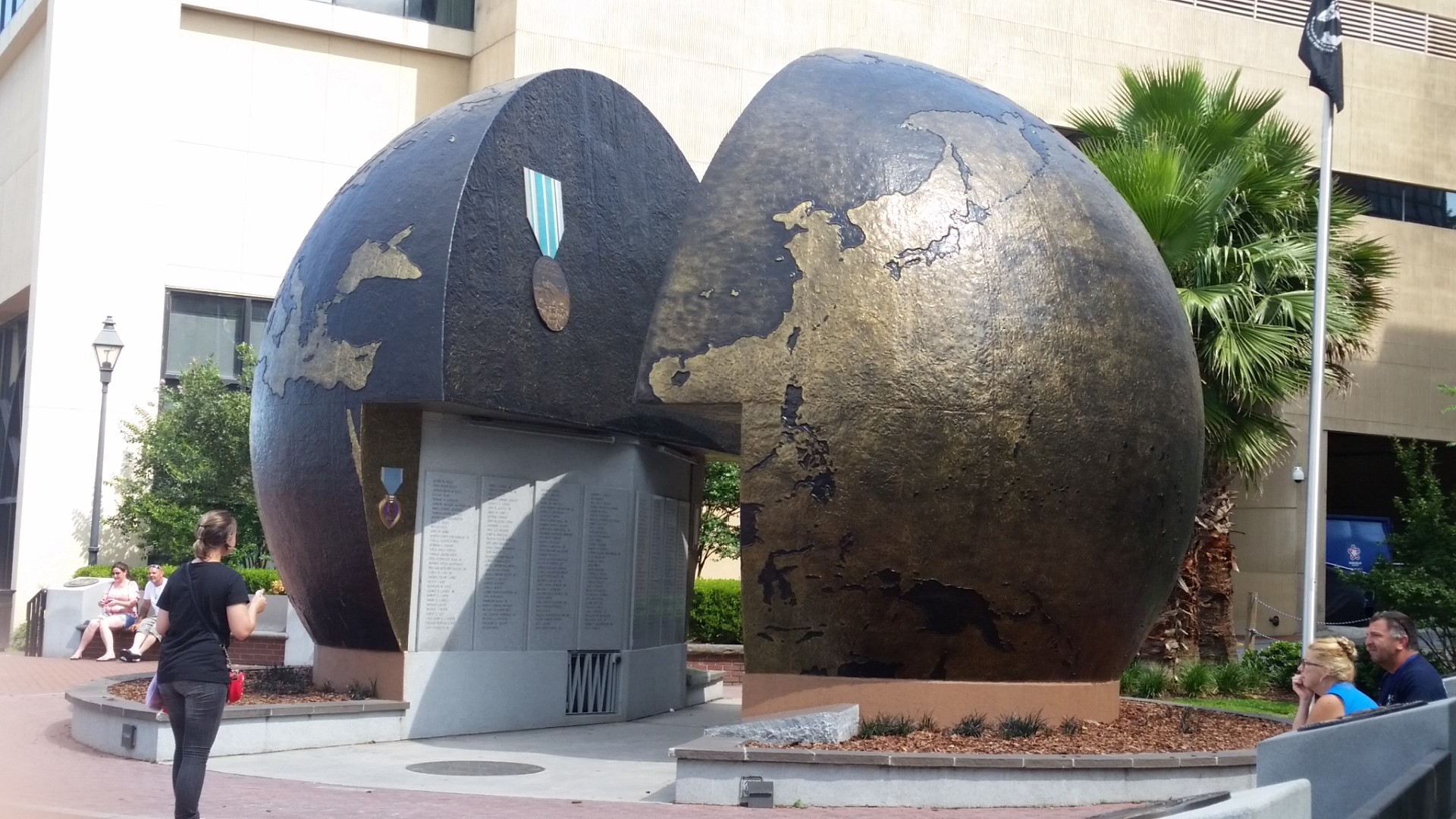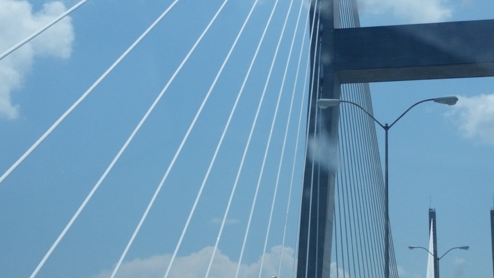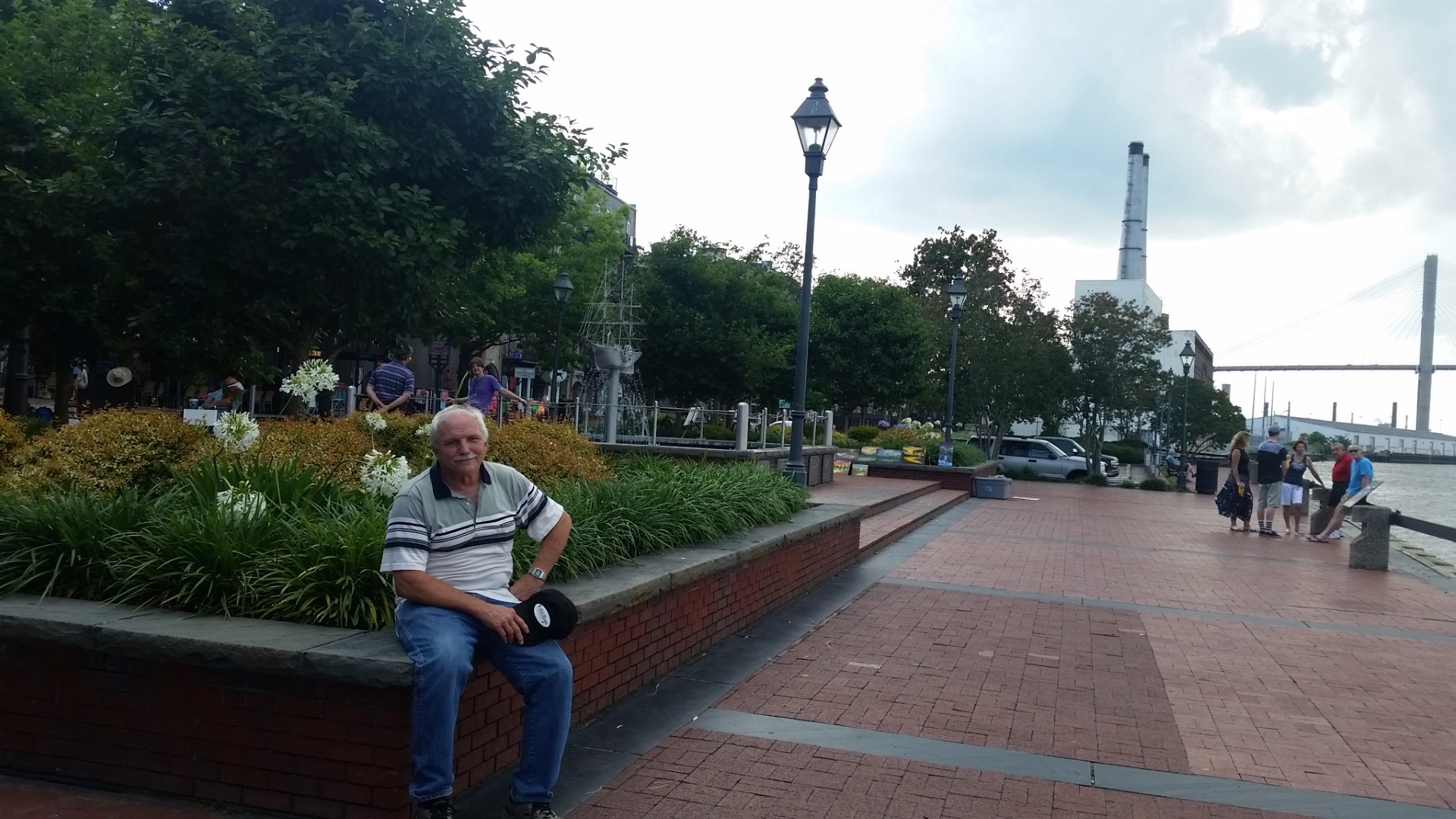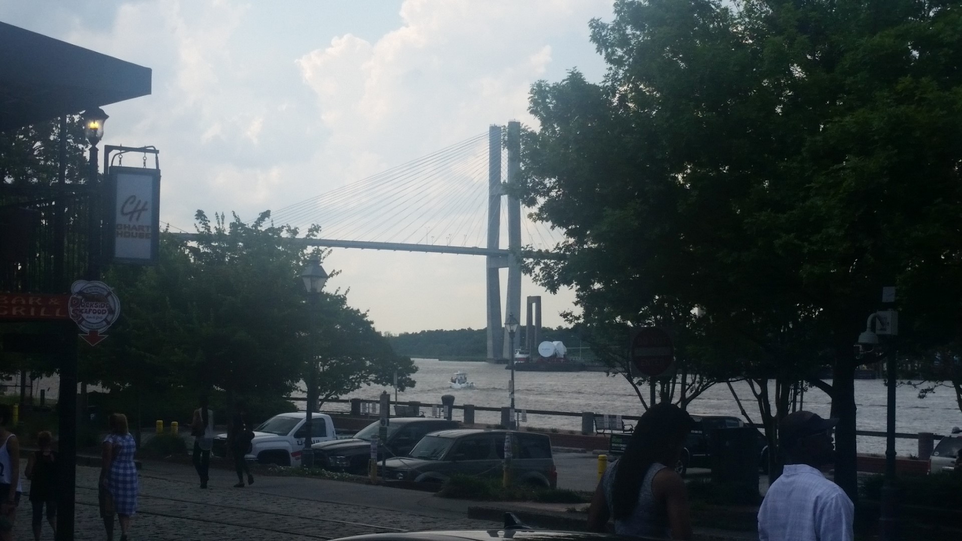 Yesterday, Friday, we drove into Savannah to see the part of Savannah along the Riverfront. Drove in over the Savannah River bridge, the Talmade Memorial Bridge.