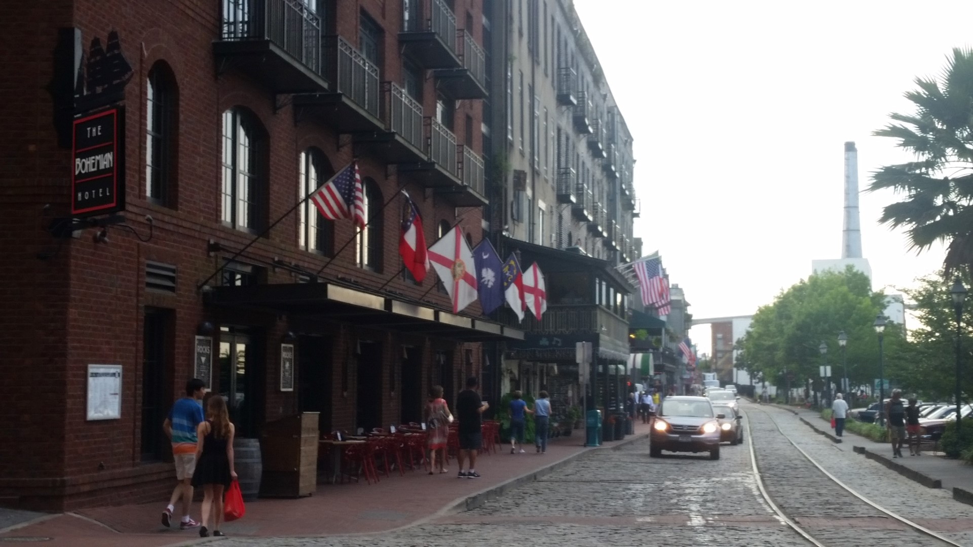 River Street runs along the river, and is made of cobblestones. There use to be a streetcar that went up and down the street and we were looking forward to riding it. We learned that it was no longer working.