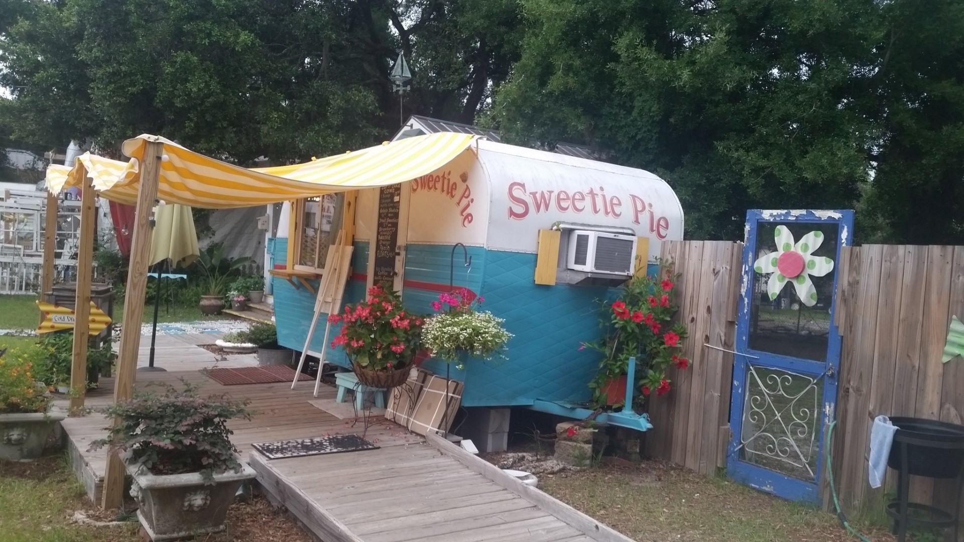 Next door to Fish Art Galleries was a super cool tiny vintage camper, Sweetie Pie, that sold snowballs. They were closed, shucks!