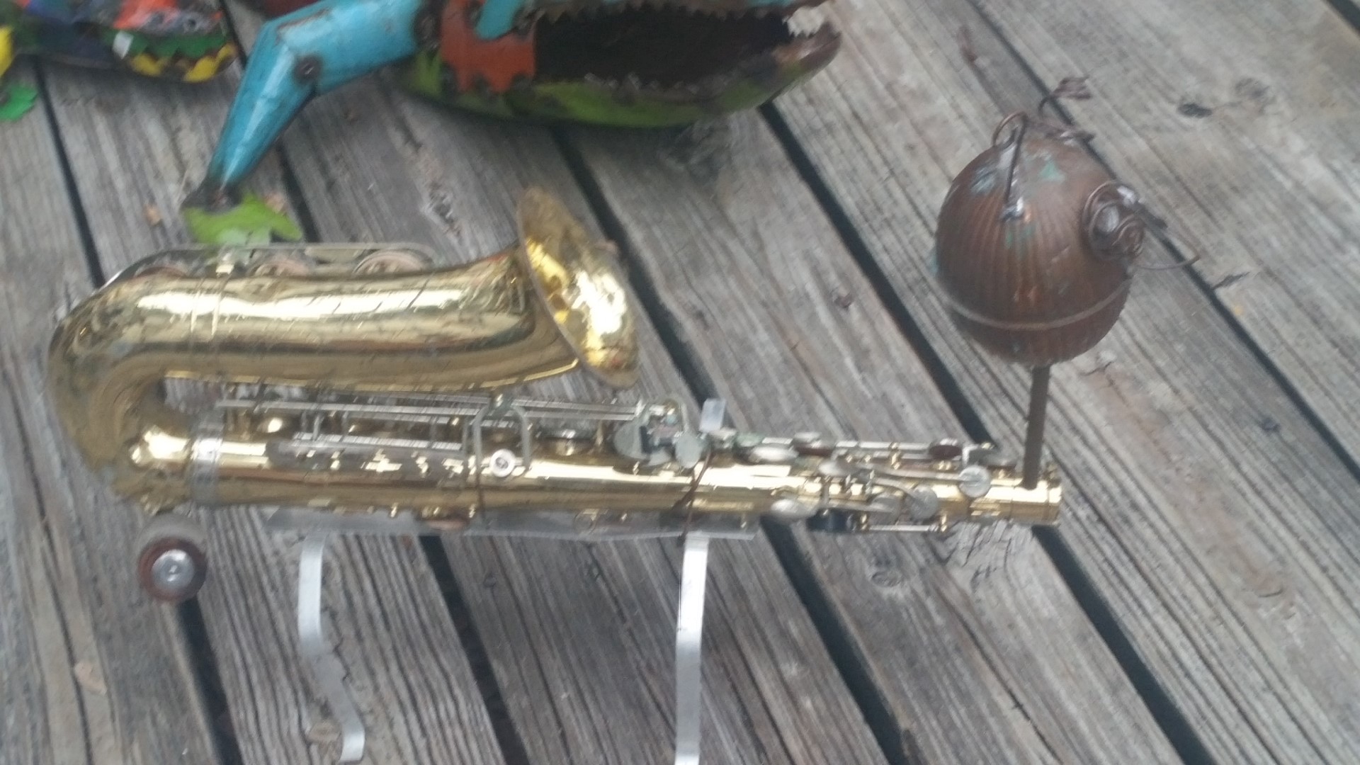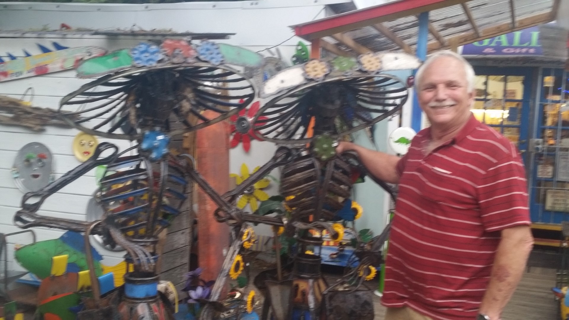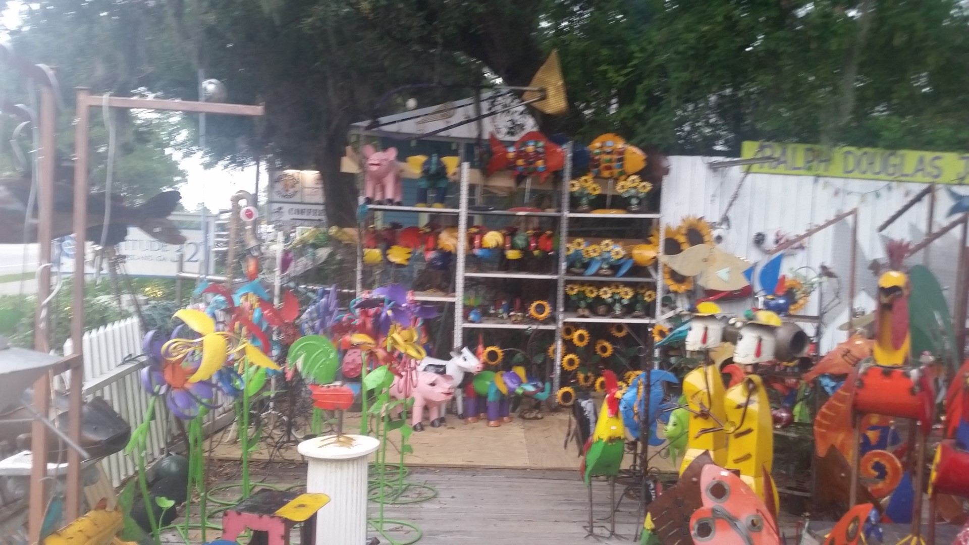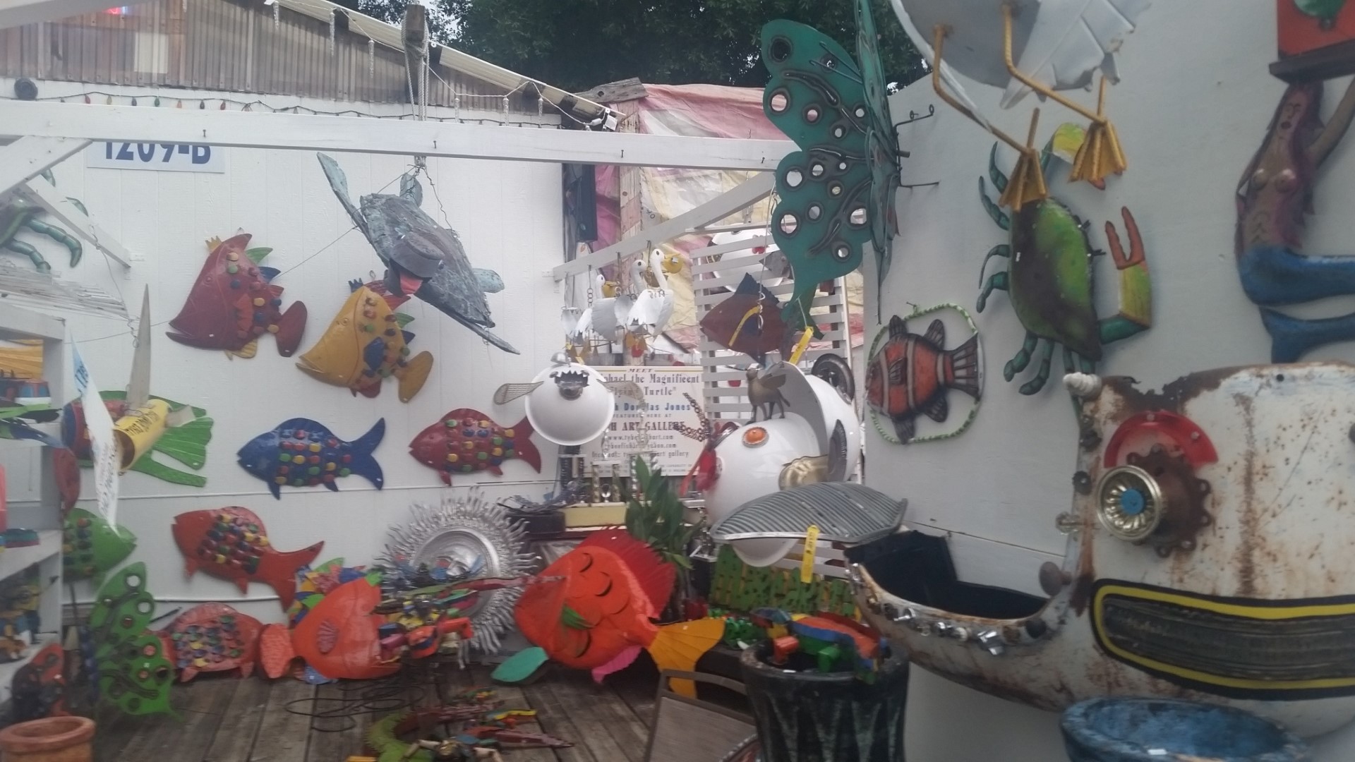 Monday, June 6, 2016 – On Sunday, on our way back from Tybee Island we some some crazy cute gift shops. We stopped and shopped! The one we spent the most time in was Fish Art Galleries, 1209 US Hwy 80 East in Tybee Island, GA. It’s all metal art using all sorts of odd parts and pieces.