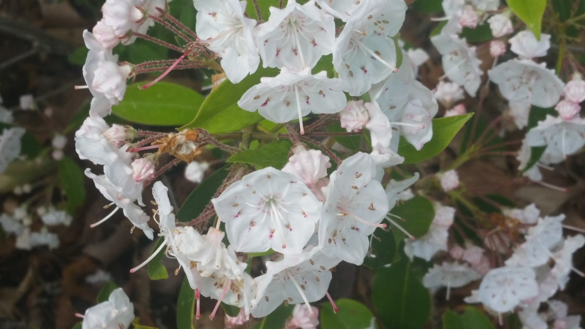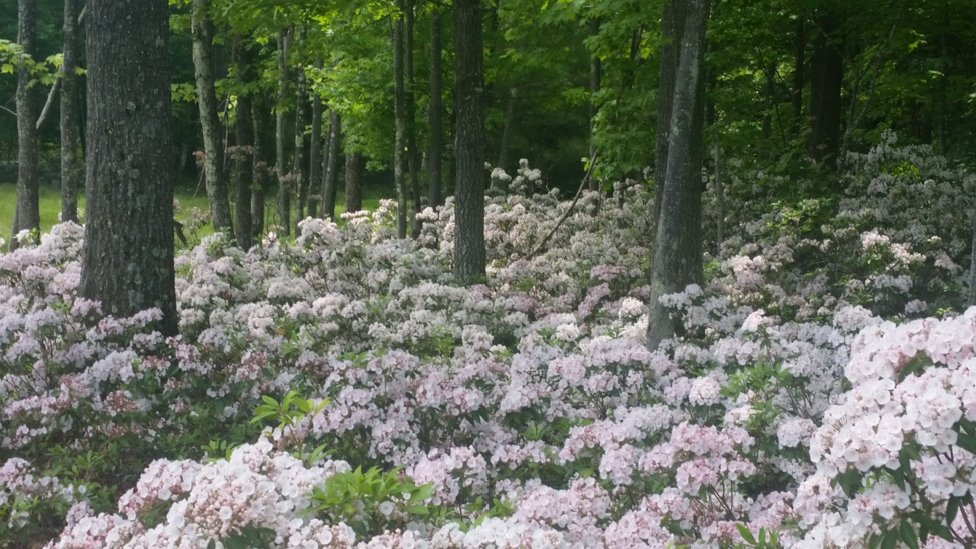 As we’ve driven along the backroads in New York we’ve seen this beautiful white blossomed plant that sometimes looks pink. They are everywhere, along the roadsides, hundreds of feet into the forests. A friend of mine told me they are Mountain Laurels. They grow wild in the mountains everywhere!