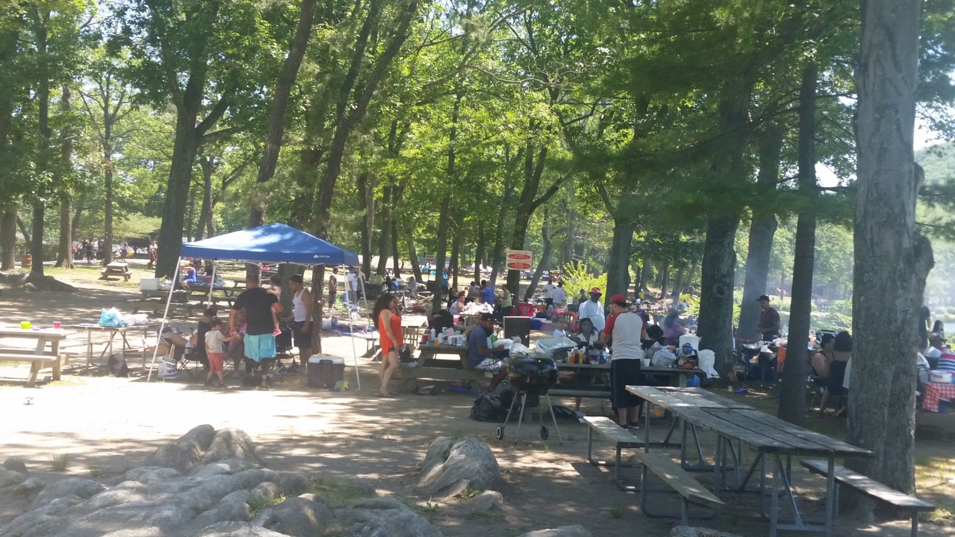 First we saw the playing field, a several acre place that lots of kids were playing on. See the first photo below. There is a huge lake in the park with a walkway all around it. Families were all over the park barbequing and enjoying meals and playing with their families. Lots of music playing and kids running around.
