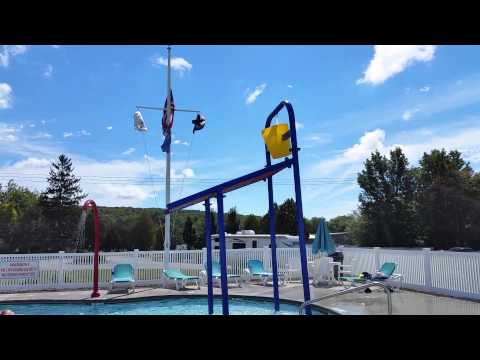 After staying last week in a 30 amp park in New York we are quite happy to have a full 50 amp here! We spent 7 days in Montaindale, NY in Hilltop RV Campground which was basically a majorly large field with trees and a few RVs. Very very quiet and cool the first few days when we were able to live with no air conditioning and the windows open! Then the temps crept higher so we experienced the difficulties an RV the size of ours with two air conditioners, etc. has living on 30 amp.