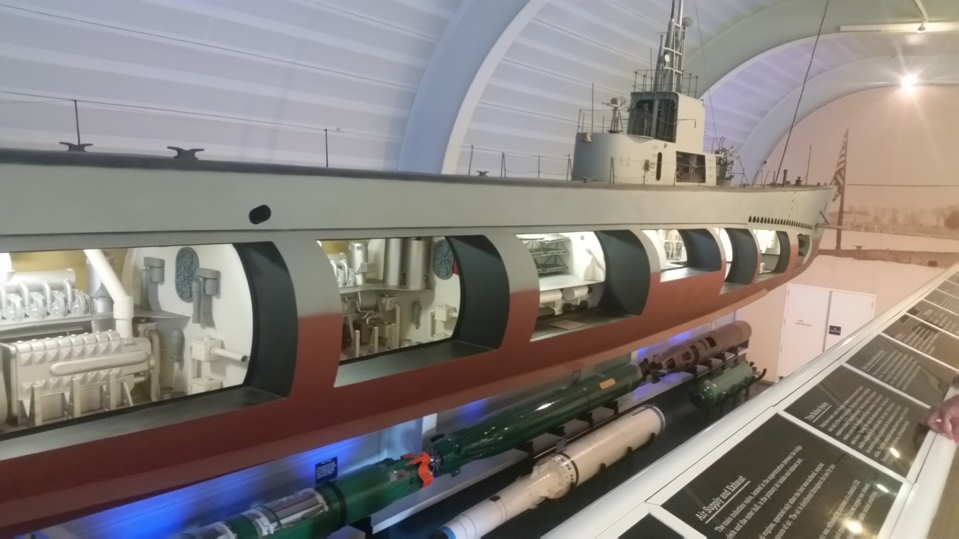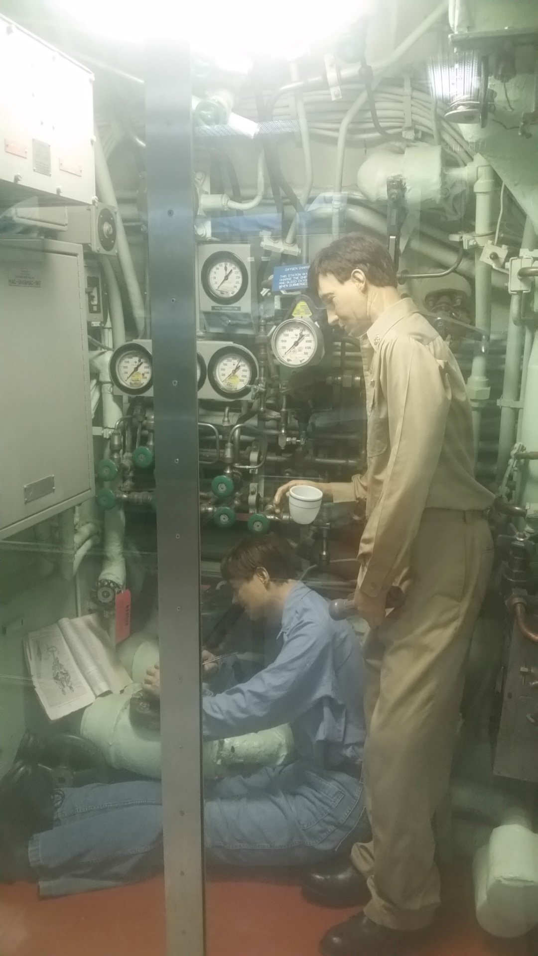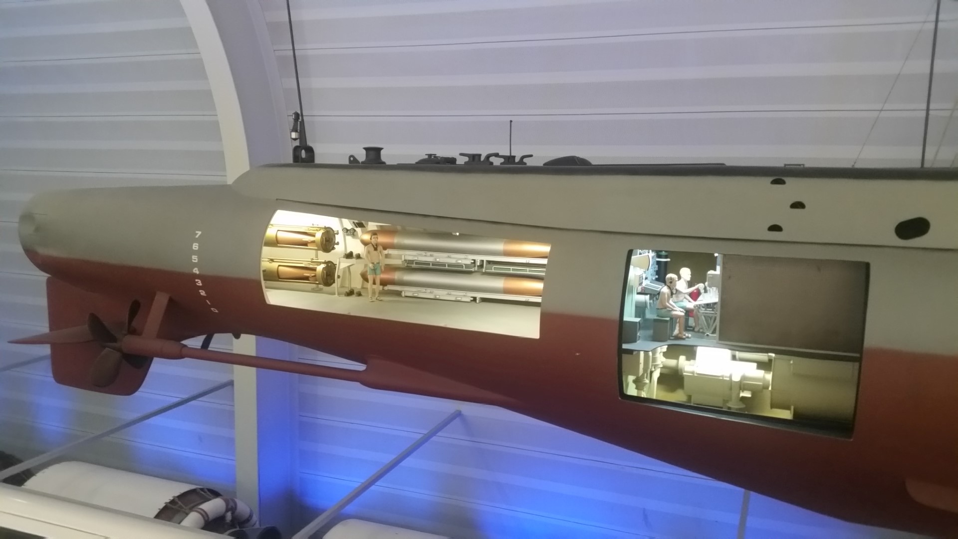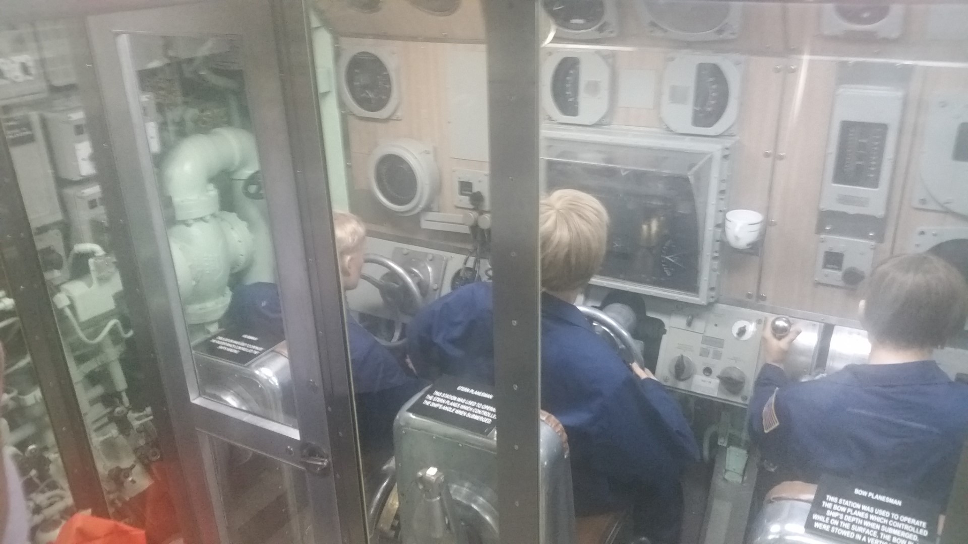 They gave us an audio tour device that explained to us every part of the ship that we saw. First was the many steps to get down below the water. Everything is protected with a glass wall which explains some of the glare in the pictures.