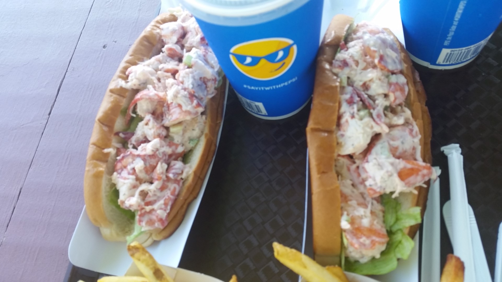 Where we eat chicken salad in Louisiana, they eat this similar food with lobster instead of chicken.  And it is served on a nicely toasted bun that looks like a hot dog bun but tastes way better!  They served it with french fries and a soft drink for $20 each.  A bit pricey for a snack shack but like I said it was a full blown meal and was quite delicious.