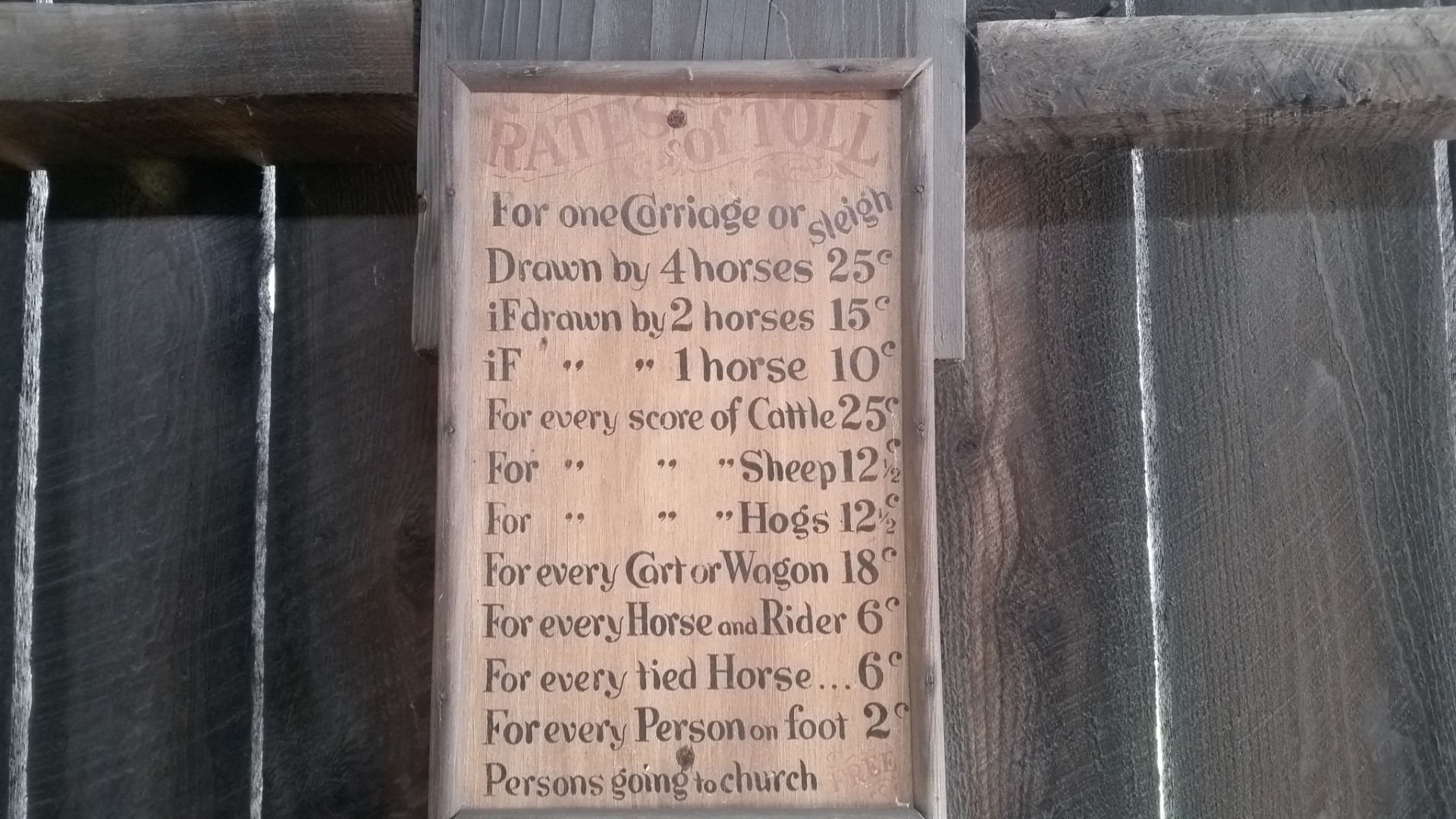 I love the plaque inside that shows the various fees for crossing the bridge. It says at the bottom that church goers could cross Free!
