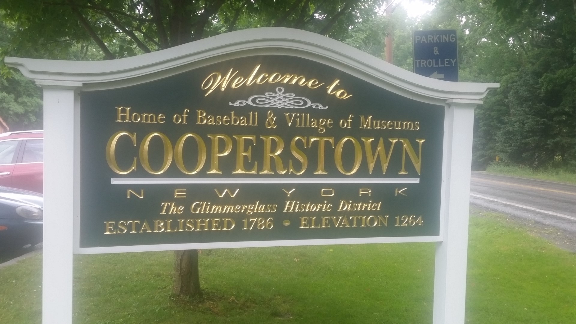 There are three trolley pick up places on the Village Trolley Route. You can park at any of them and for $2 take a ride to several different drop of points, one of which is the Hall of Fame. The $2 covers the round trip. We got off the trolley a couple of blocks before the Hall of Fame so we could see some of the shops in the area. There are parking lots in the city of Cooperstown that are between $12 and $14 a day. We chose the trolley ride and loved it!