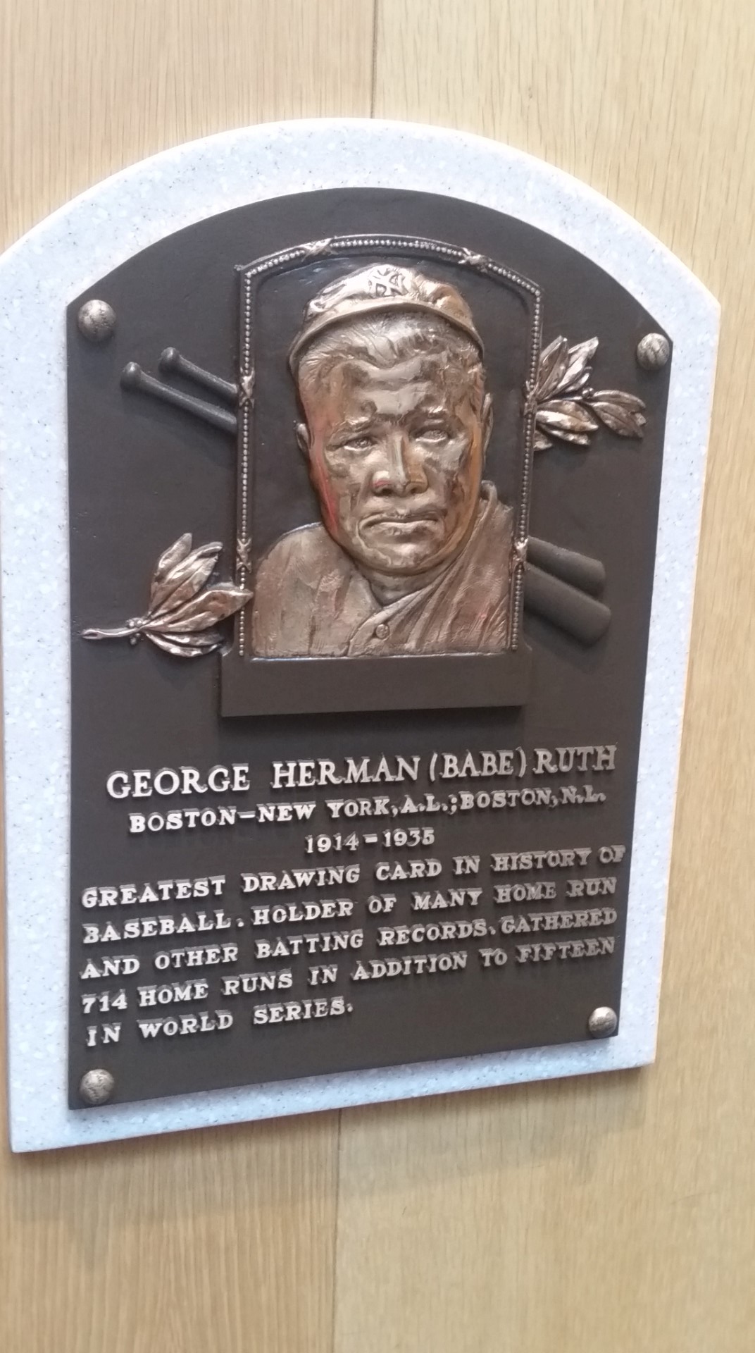 – EACH ALCOVE DISPLAYED THE PLAQUES OF THOSE INDUCTED INTO THE HALL OF FAME DURING A SPECIFIC TIME PERIOD20160708_164030national-baseball-hall-of-fame-and-museum_119876 Head_Atrium_HOFIN THE VERY CENTER OF THE BACK OF THE HALL OF FAME IS A DISPLAY WITH THE FIRST FIVE PLAYERS INDUCTED
