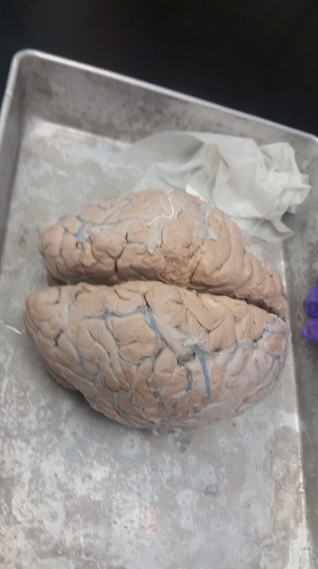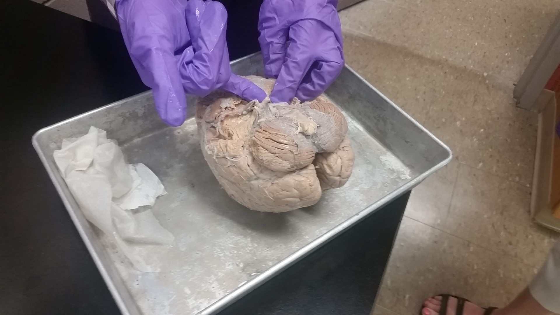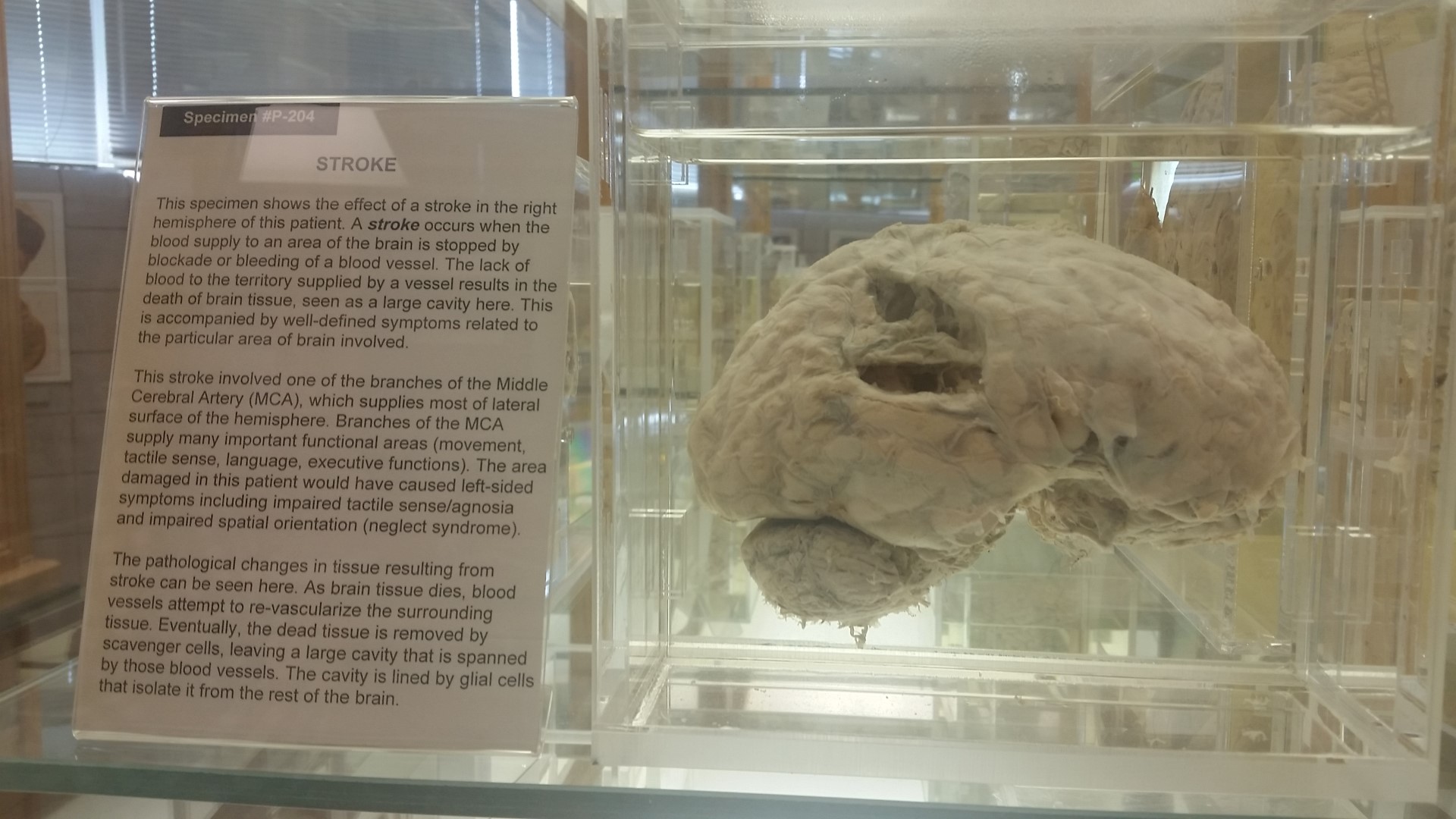 We got to see what a brain looks like after a major stroke. The one we saw has a large hole in it from the dead area affected by the stroke.
