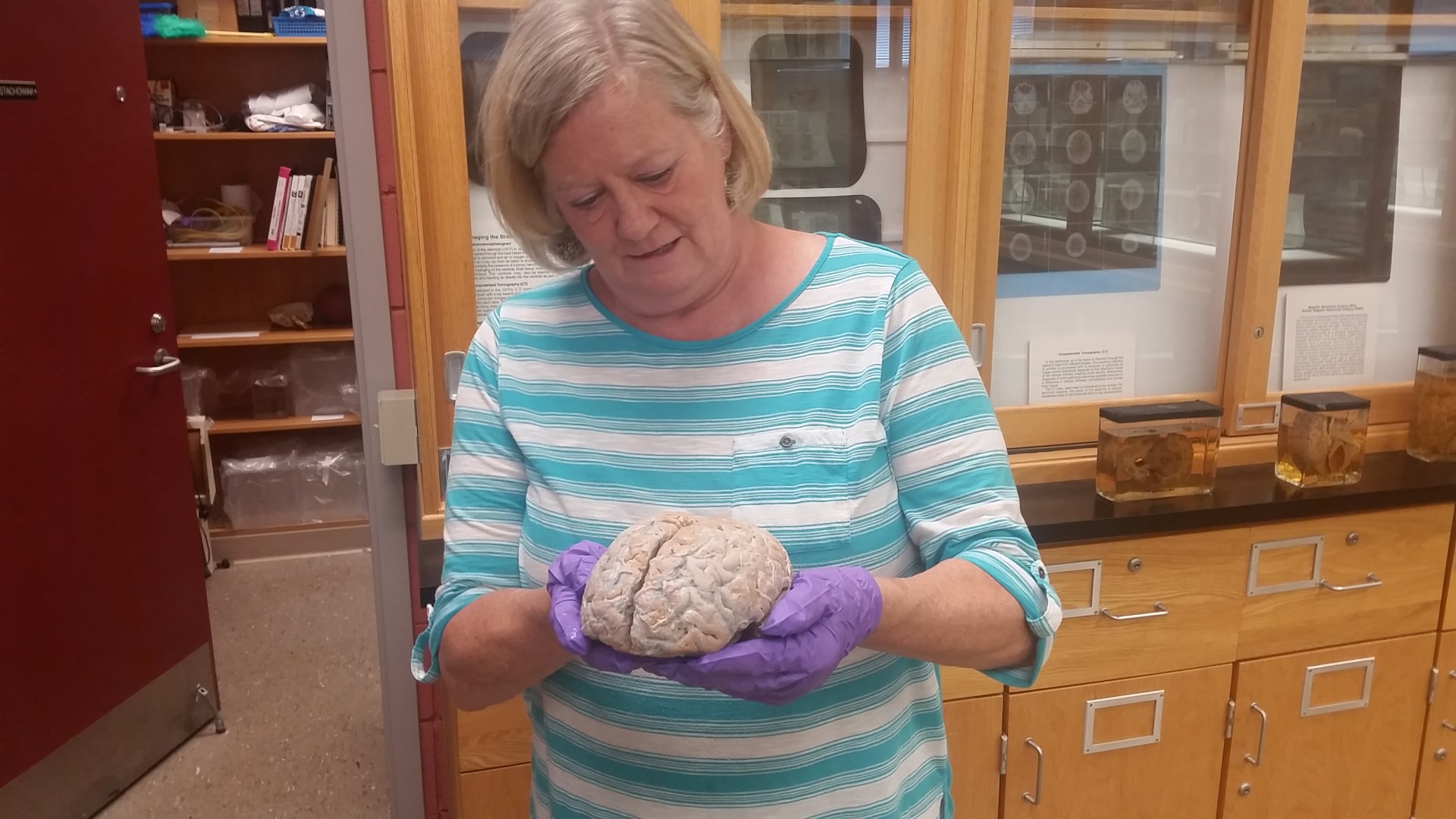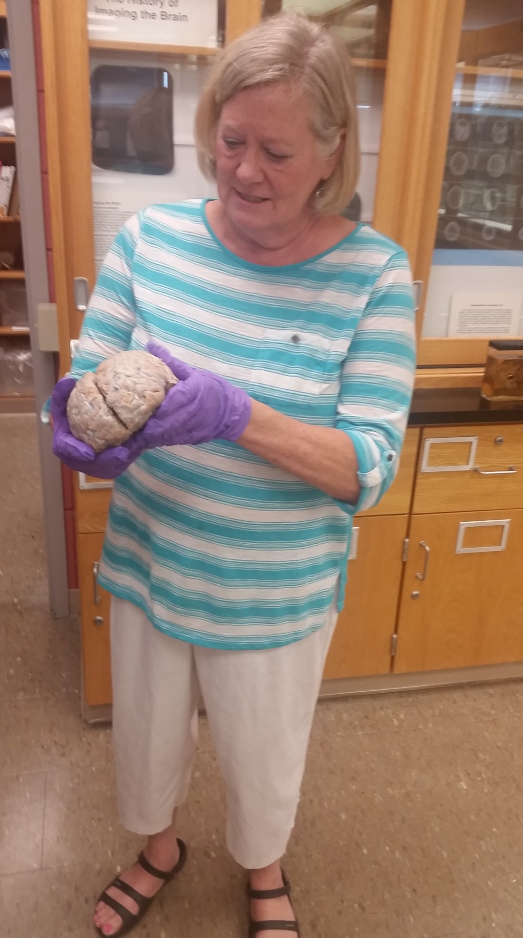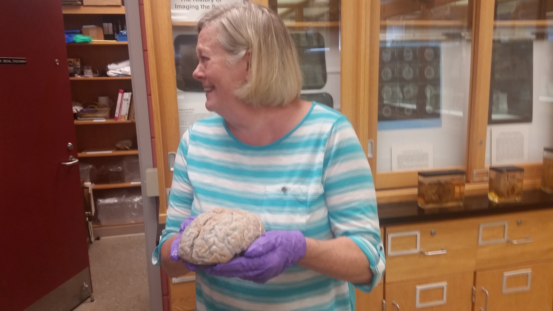 We got to see what a brain looks like after a major stroke. The one we saw has a large hole in it from the dead area affected by the stroke.