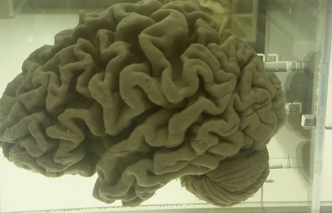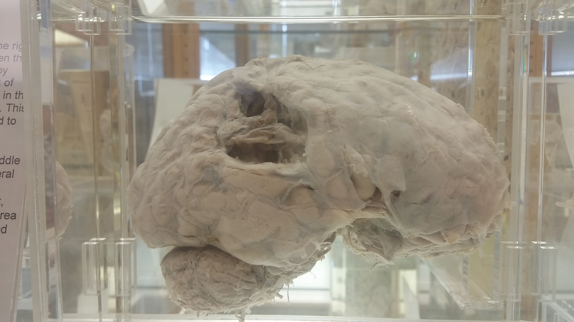 The museum’s collection focuses on the anatomy of the normal human brain in undissected and dissected preparation. Imagine a whole room full of brains both normal and diseased. Somewhere around 90 to be a little more exact.