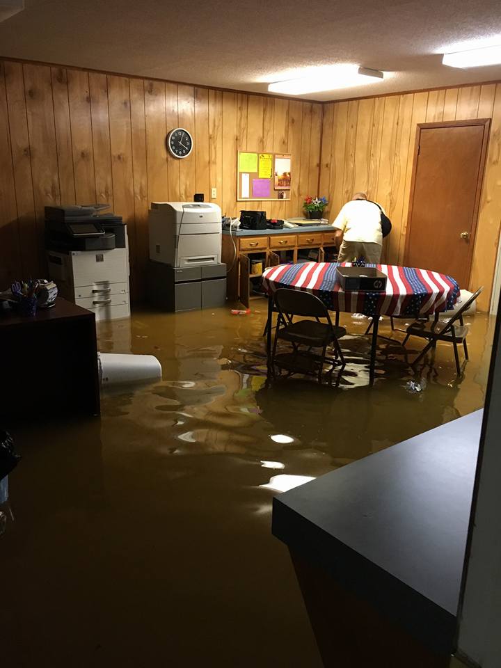 This was the message our Transitional Pastor, Rev. Bob Adams sent out to our church members several days ago when the flooding began They had Wednesday night prayer meeting in the sanctuary with walls torn out and all the buildings gutted as needed.
