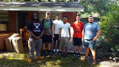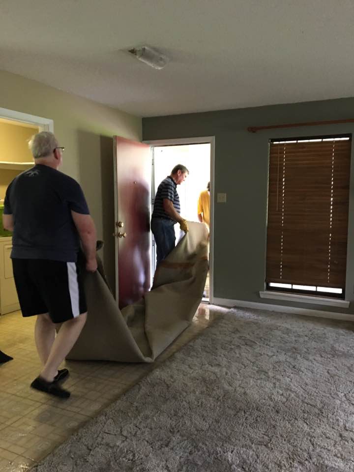 Here’s some of the Lion’s helping gut Ms. Emily Wall’s home. She is a dear 95 year old church member at Trinity. The L they are displaying is our Lion Up sign showing Southeastern Louisiana University school pride. Look at Ms. Emily joining them in it. I know they were a blessing to her and for sure she was a blessing to them!!
