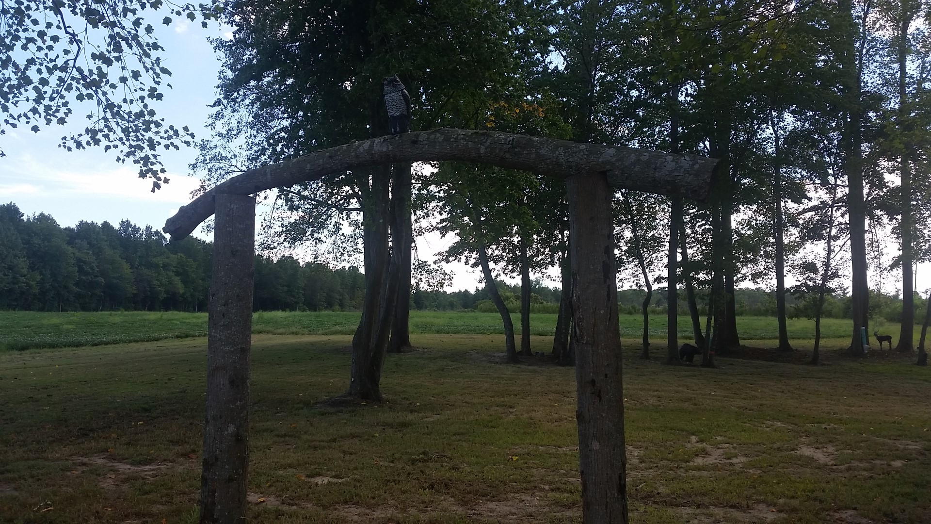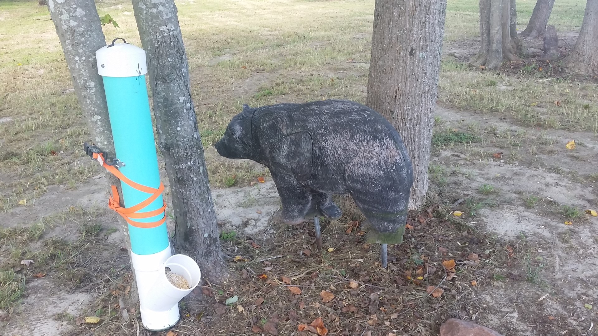 Near our RV was a cleared piece of land with a fake bear, deer, owl, bunny and gopher. By the deer and bear were tubes filled with wild animal feed.