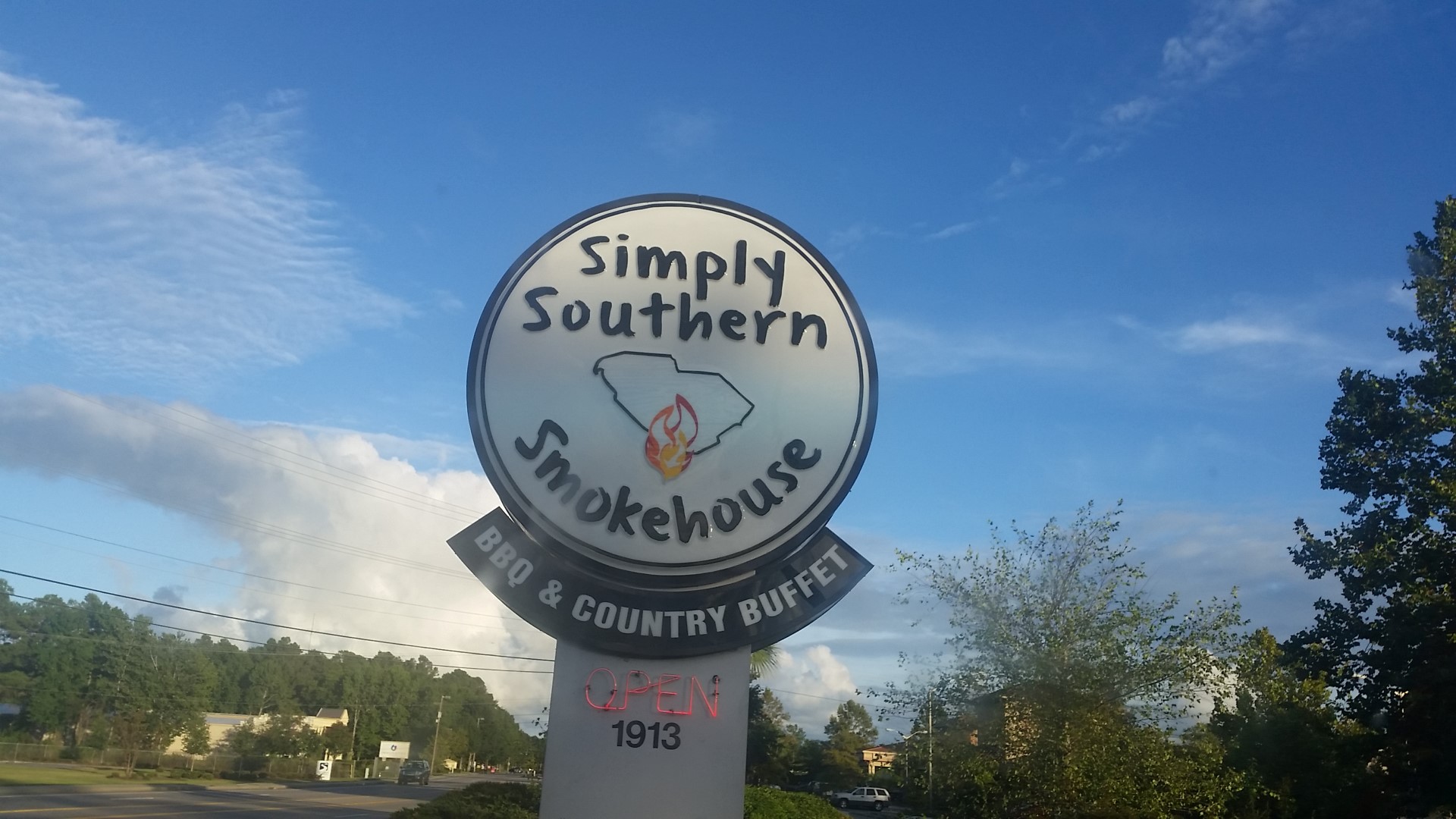 We drove around Myrtle Beach yesterday and saw some of the beautiful beaches here. We bought a discount coupon book (at a local church) that is filled with buy one get one free dinners and entertainment in this area. One of the restaurants is Simply Southern Smokehouse, which is where we ate yesterday. Delicious southern buffet here these two little piggies filled up quite nicely! All for only $11.95 with the coupon! Wow!!