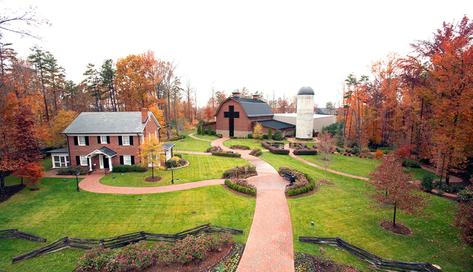 Aerial view of the Graham home and the Library