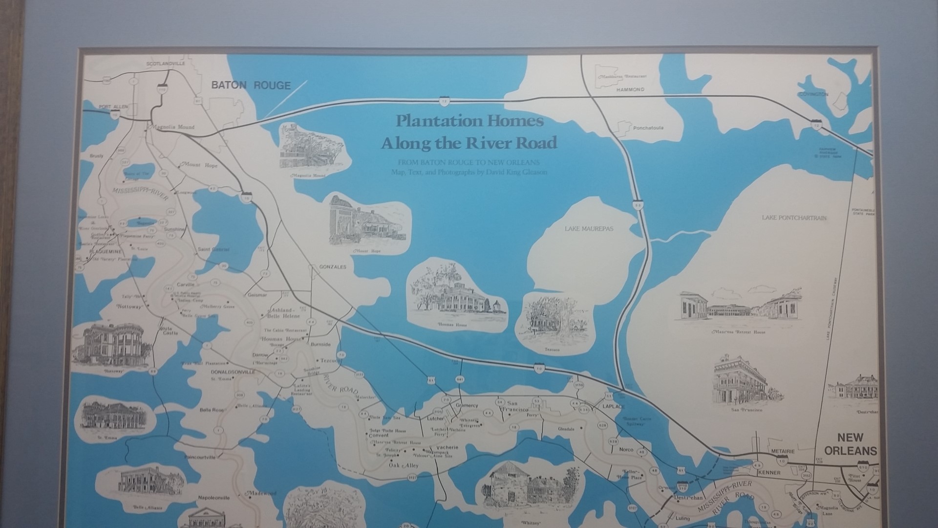 A map showing “some” of the many plantations along the Mississippi River southeast of Baton Rouge, Louisiana.