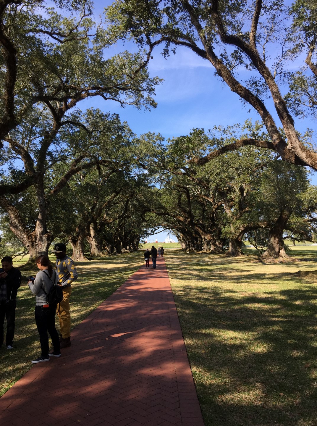 We enjoyed the ride to Oak Alley along the winding River Road in Vacherie. The levees (seen in the picture below) were much lower in olden times which made sitting on the front porch an amazing thing to see the riverboats going past!