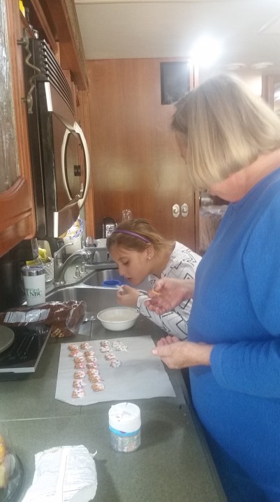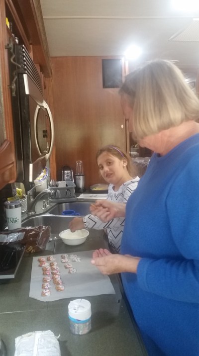 I showed she and Chip all the chocolate Easter candy I’ve made so far and their eyes got really big!! Madisyn and I dipped pretzels in white chocolate and sprinkled them with heart sprinkles. She’s such a great little helper and we had so much fun doing it. I sent them home with a small bag of candies but I’m not sure how many were shared with Misty and Kallie!