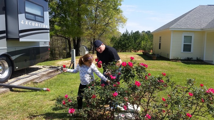 When she spotted the rose bushes out our window, she asked if she could clip one to take to Misty so before they left we did that. She found one for Misty, one for Kallie, one for herself and two little buds for her babies. I taught she and Chip about the importance of snipping off the “dead head” that remains after all the rose petals fell off each flower. They need to be snipped periodically to encourage more rose growth. She and Chip worked on snipping until all three bushes in the front were done. I love passing on my love and interest in growing plants of all kinds with Madisyn. She thinks nothing of throwing a banana peel into a garden to help provide nutrients to the soil! That’s my little gardener granddaughter!!
