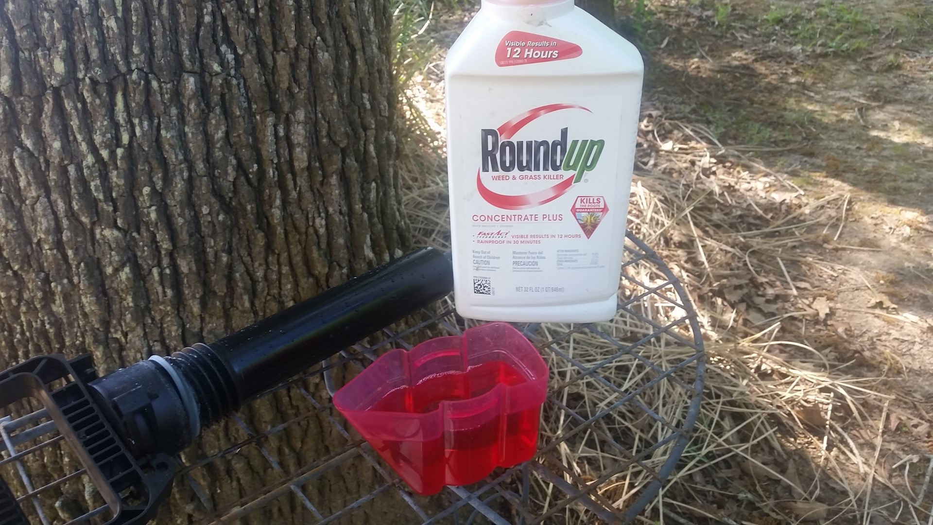 Well that wraps up my absolutely awesome Thursday last week. Today isn’t too shabby either as I set out to spray roundup on the weeds around our property here. Yesterday I sprayed all those weeds with pure water, forgetting to pour in sprayer the Roundup I poured into the measuring container, and left sitting