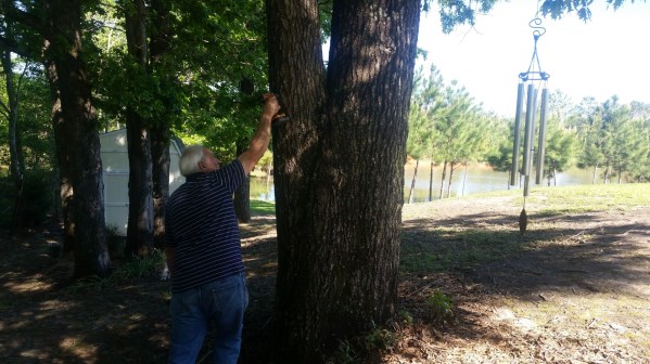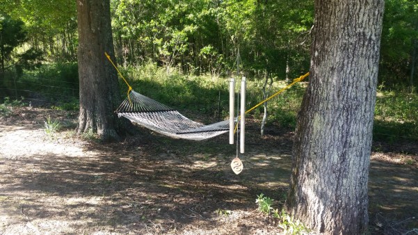 Years ago we had a hammock at our house on Hinson Road in Hammond. I’ve been wanting a new one since that one was taken down. After the fiasco of the hammock Roy ordered not fitting the metal stand Roy decided to hang it between two trees on our property. Oh I am in Heaven!!! I got to help a little and am definitely the happy user of an amazing hammock right next to some wind chimes close to the pond!
