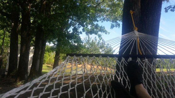 It’s a little difficult to see in this picture but this is the shady setting the hammock is in.