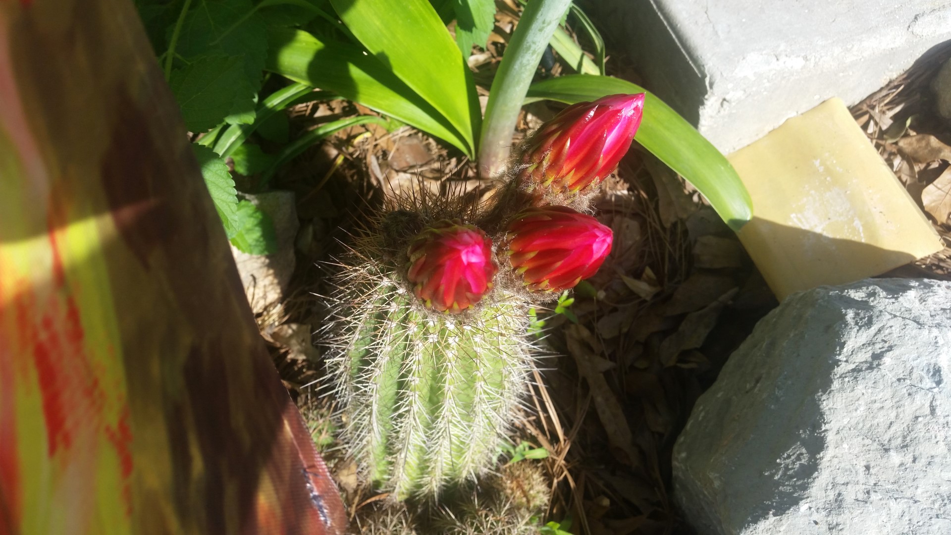 The flowers are blooming slowly but surely outside. One of our cacti had beautiful red buds on top yesterday. We learned to love blooming cactus during our time in Texas a couple of years ago so we bought some and now our garden is blooming with new life!