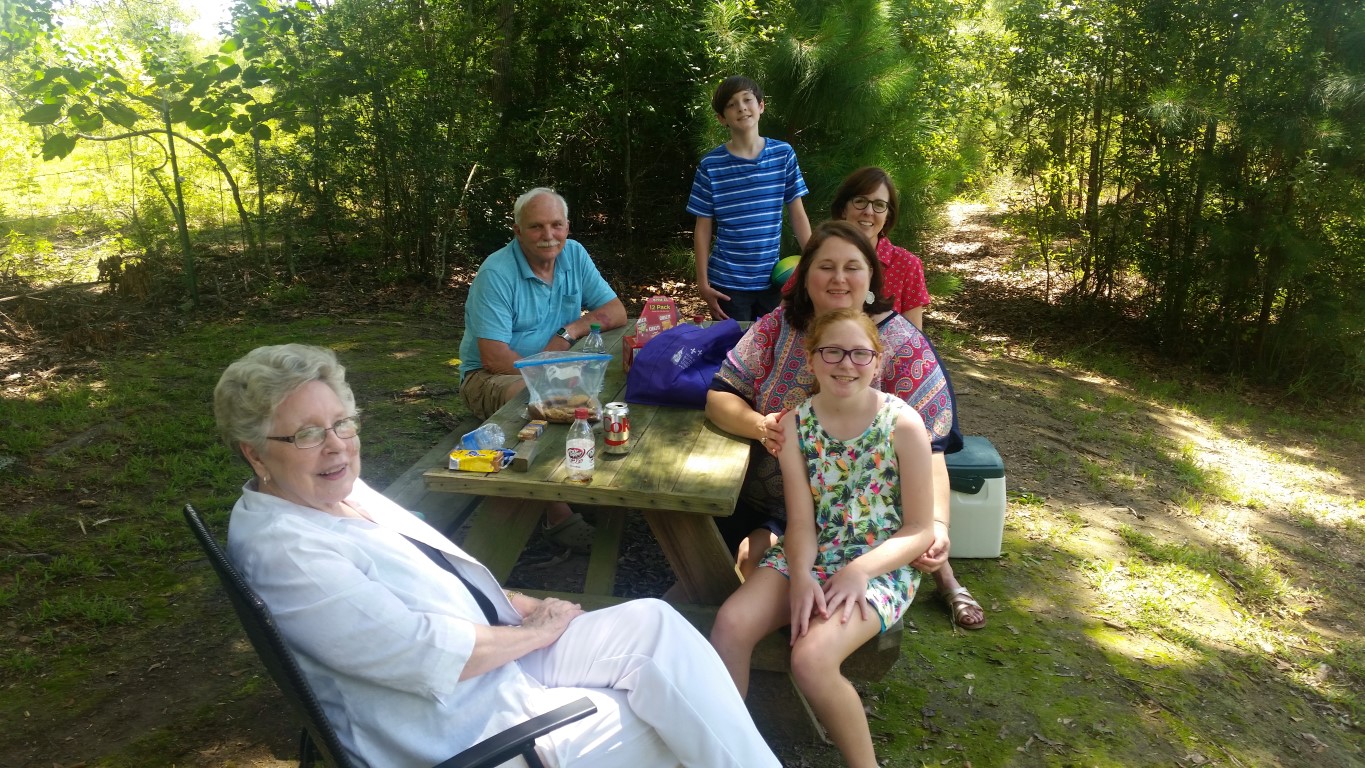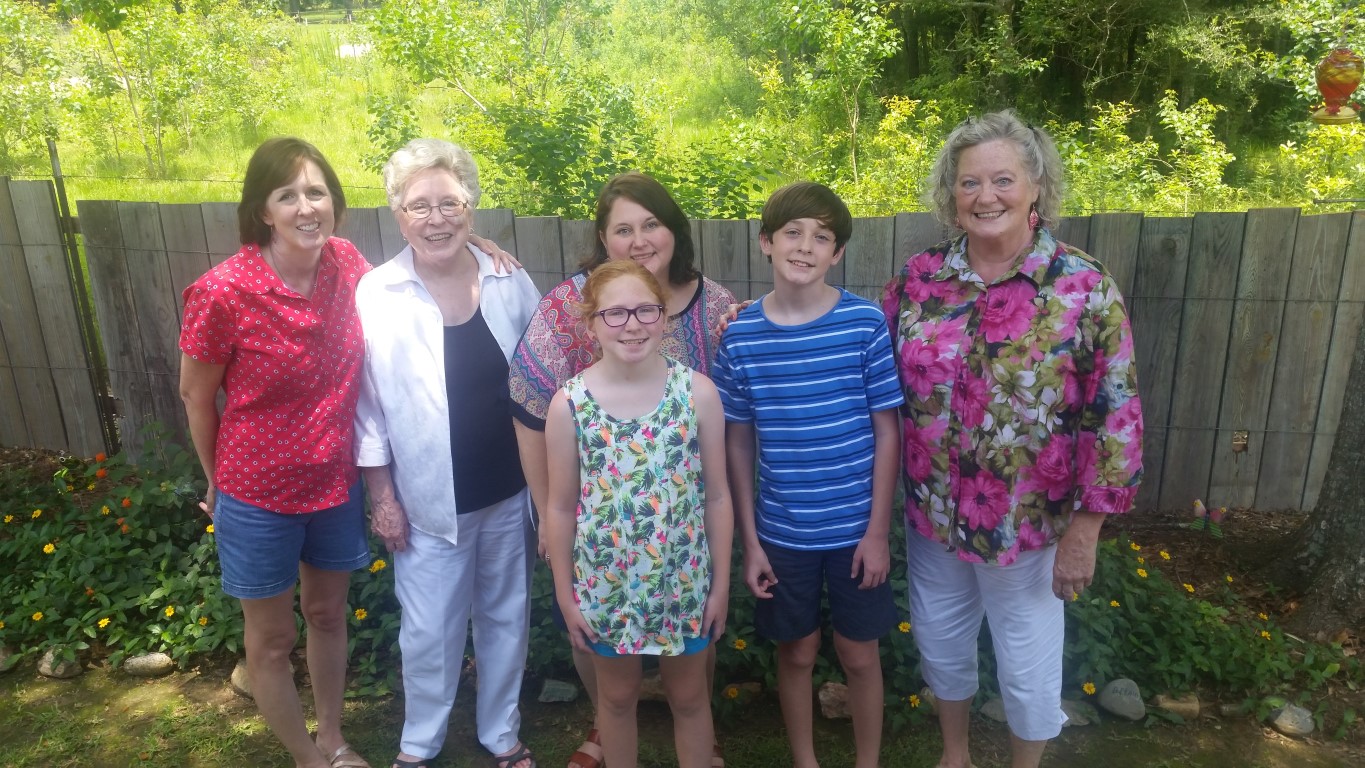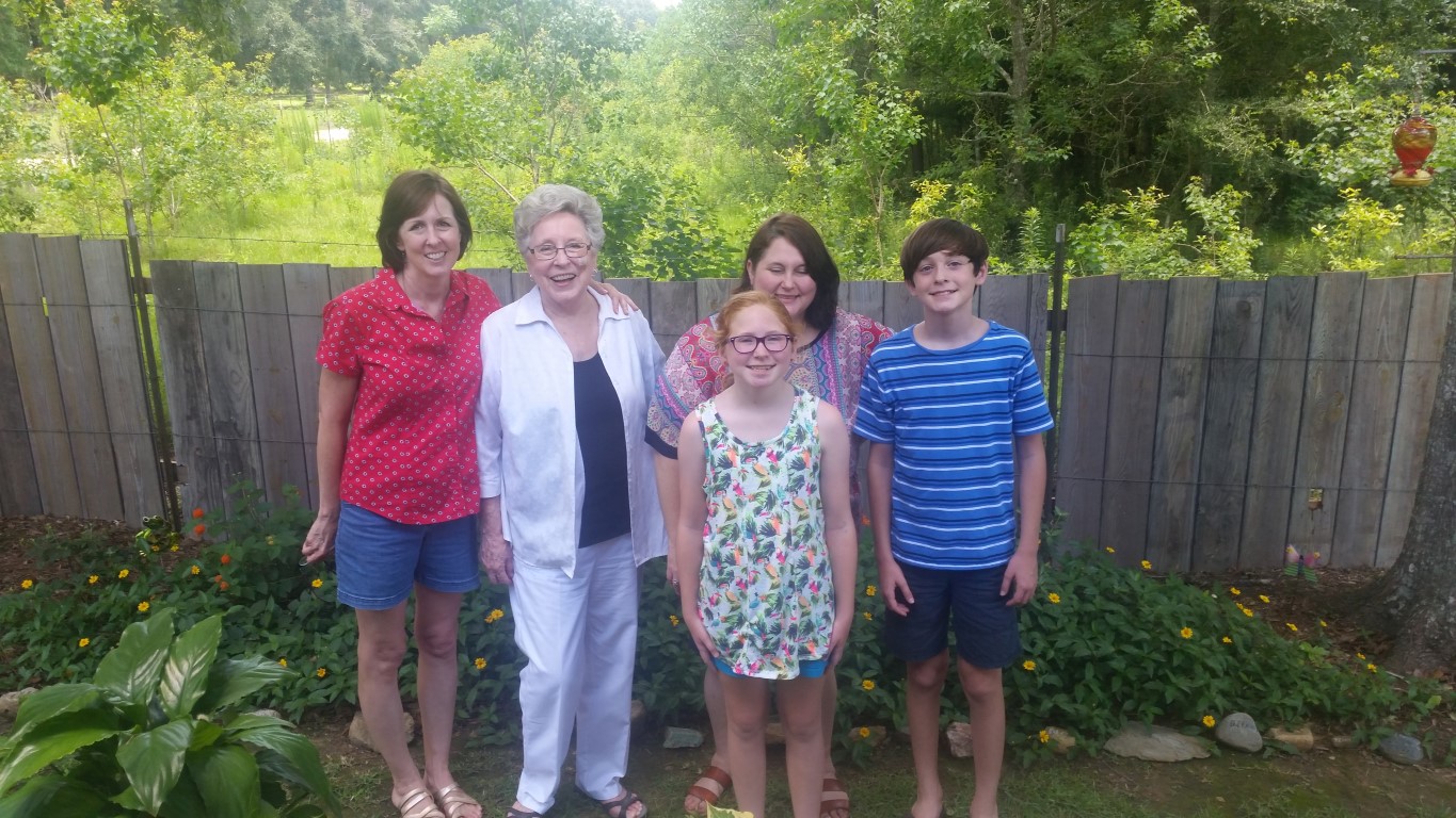 Friday, June 16, 2017 – Yesterday, my sister Harriett brought some of her family to play and visit us! Our niece (Greg’s wife) Nancy and their daughter Sally haven’t been to our home in Amite before now. I was so excited to get to show them around!