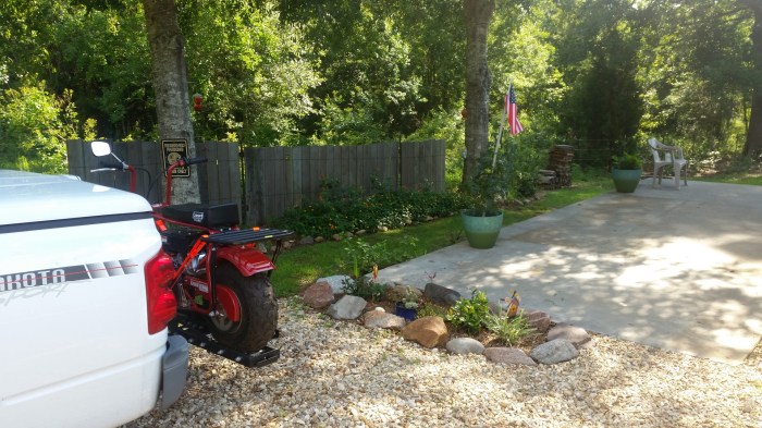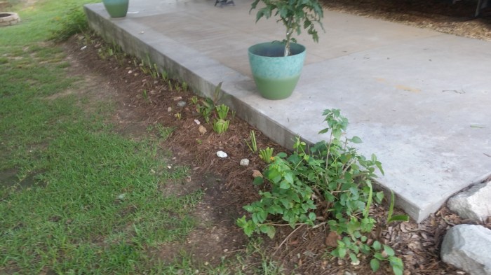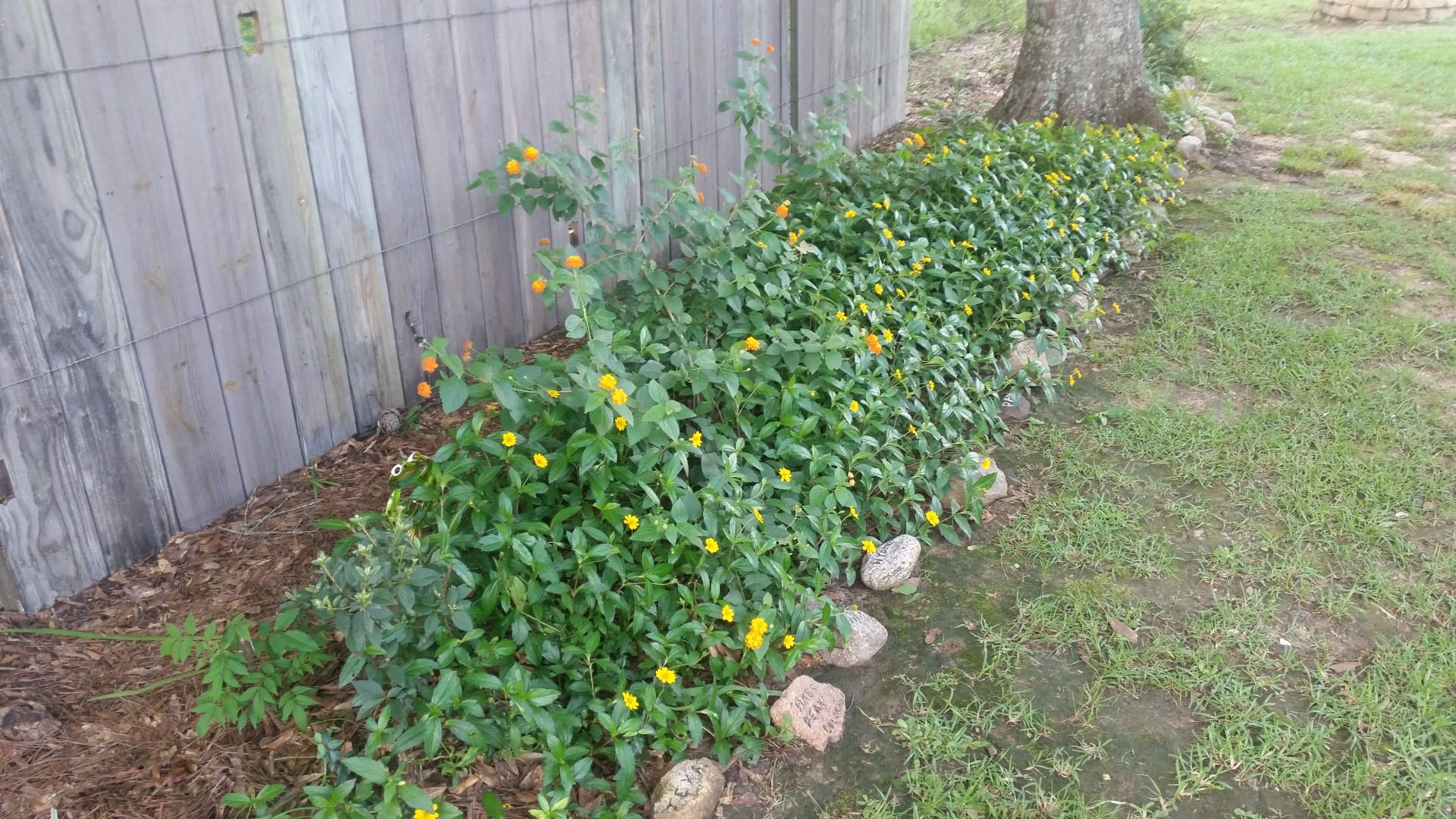 All the lillies and lantanas are cut back and you can see some of the rocks I painted. Kallie and Madisyn hid them for me – hid in plain sight that is!