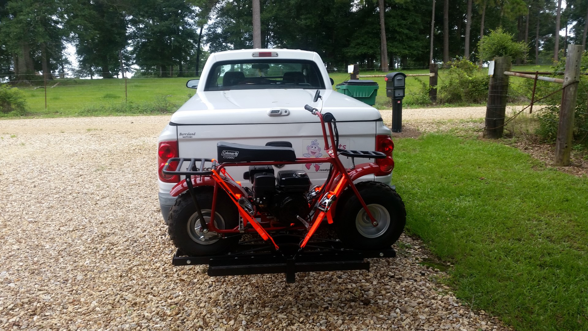 Pretty sure no one can miss us with the bright orange strapping! This is new for us, taking the motor bike with us on the road. Looking forward to riding it!