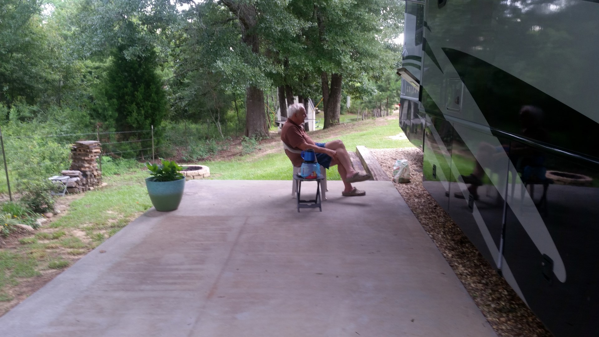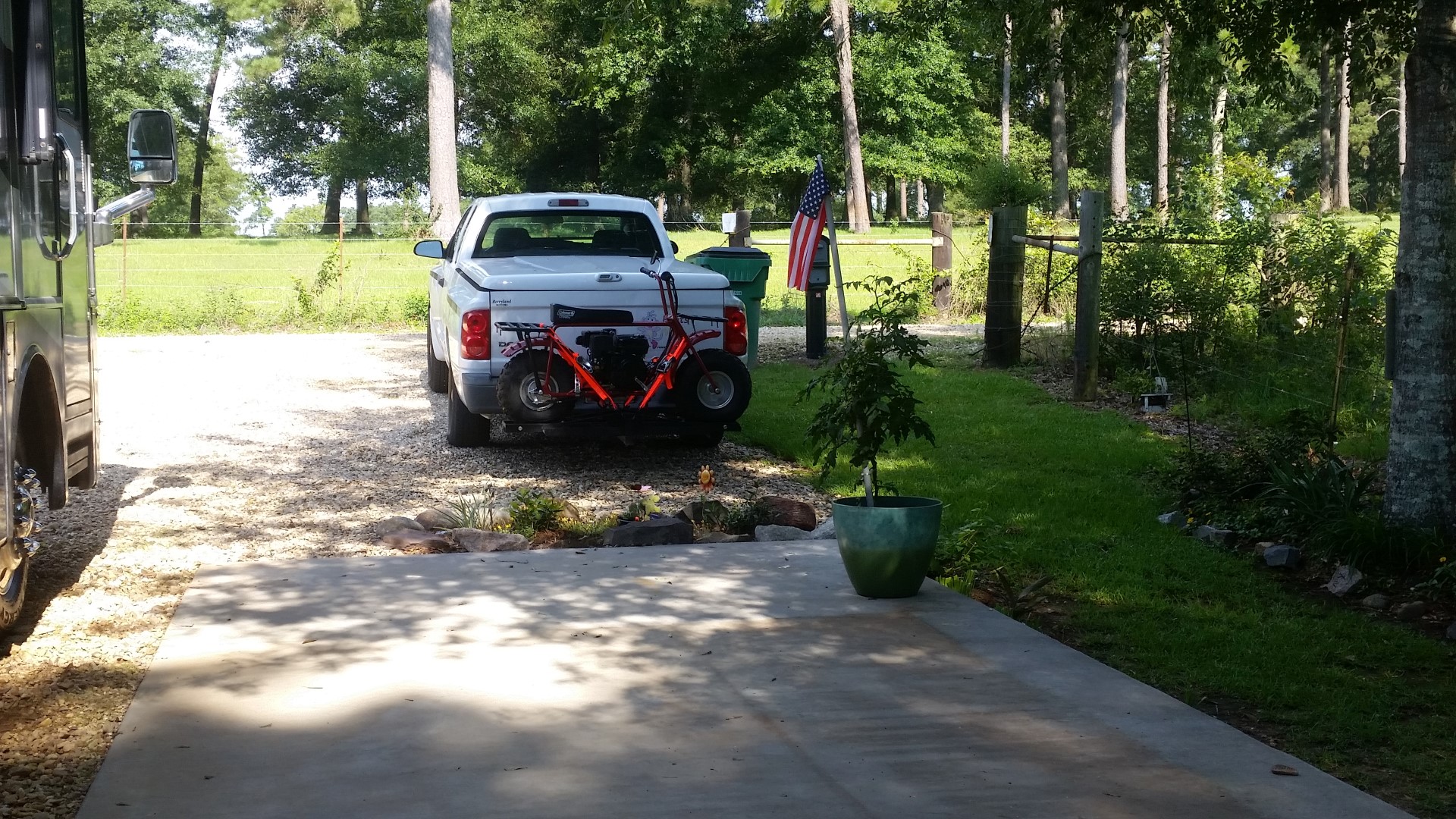 A look at the empty RV parking space and our patio Dora’s out on the road ready to get hooked up with Boots.